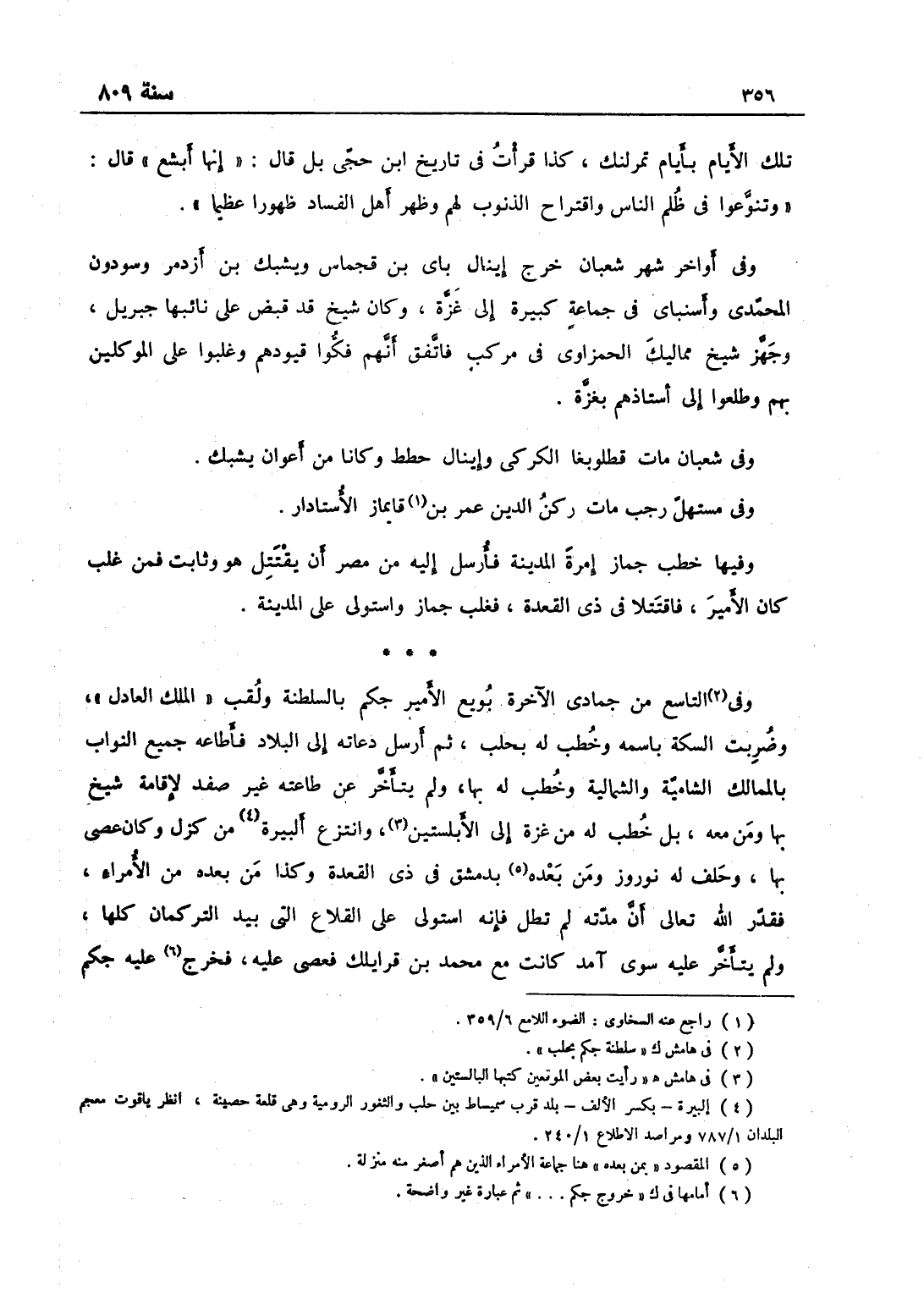 وفي التاسع من جمادى الآخرة بويع للأمير جكم بالسلطنة، ولقب الملك العادل، وضربت السكة باسمه، وخطب له بحلب، ثم أرسل دعاته إلى البلاد فأطاعه جميع النواب بالممالك الشامية والشمالية وخطب له بها، ولم يتأخر عن طاعته غير صفد لإقامة شيخ بها ومن معه بل خطب له من غزة إلى الأبلستين، وانتزع البيرة من كزل وكان عصى بها، وحلف له نوروز ومن بعده بدمشق في ذي القعدة وكذا من بعده من الأمراء، فقدر الله تعالى أن مدته لم تطل، فإنه استولى على القلاع التي بيد التركمان كلها، ولم يتأخر عليه سوى آمد، كانت مع محمّد بن قرا يلك فعصى عليه، فخرج إليه جكم