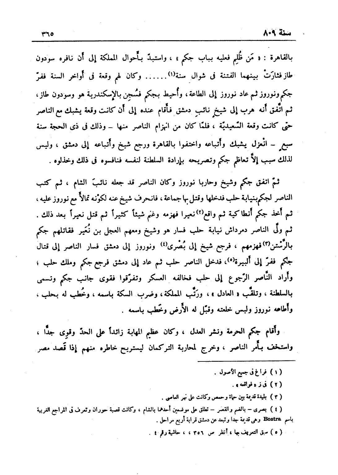 بالقاهرة: من ظلم فعليه بباب جكم واستبد بأحوال المملكة إلى أن نافره سودون طاز، فثارت بينهما الفتنة في شوال سنة أربع وكان لهم وقعة في أواخر السنة ففر جكم ونوروز، ثم عاد نوروز إلى الطاعة وأحيط بجكم فسجن بالإسكندرية هو وسودون طاز، واتفق أنه هرب إلى شيخ نائب دمشق فأقام عنده إلى أن كانت وقعة يشبك مع الناصر حتى كانت وقعة السعيدية، فلما كان من انهزام الناصر منها وذلك في ذي الحجة سنة سبع انعزل يشبك وأتباعه واختفوا بالقاهرة ورجع شيخ وأتباعه إلى دمشق، وليس لذلك سبب إلا تعاظم جكم وتصريحه بإرادة السلطنة لنفسه فنافسوه في ذلك وخذلوه، ثم اتفق جكم وشيخ وحاربا نوروز وكان الناصر قد جعله نائب الشام، ثم كتب الناصر لجكم بنيابة حلب فدخلها وقتل بها جماعة، فانحرف شيخ عنه لكونه تمالأ مع نوروز عليه، ثم اخذ جكم أنطاكية، ثم واقعه نعير فهزمه وغنم شيئاً كثيراً ثم قتل نعيراً بعد ذلك، ثم ولى الناصر دمرداش نيابة حلب فسار هو وشيخ ومعهم العجل ابن نعير فقاتلهم جكم بالرستن فهزمهم، فرجع شيخ إلى مصر ونوروز إلى دمشق، فسار الناصر إلى قتال جكم ففر إلى البيرة، فدخل الناصر حلب ثم عاد إلى دمشق، فرجع جكم وملك حلب، وأراد الناصر الرجوع إلى حلب فخالفه العساكر وتفرقوا، فقوي جانب جكم وتسمى بالسلطنة وتلقب العادل ورتب المملكة وضرب السكة باسمه وخطب له بحلب، وأطاعه نوروز ولبس خلعته وقبل له الأرض وخطب باسمه، وأقام جكم الحرمة ونشر العدل وعظم المهابة زائداً على الحد وقوي جداً واستخف بأمر الناصر، وخرج لمحاربة التركمان ليستريح خاطره منهم إذا قصد مصر،