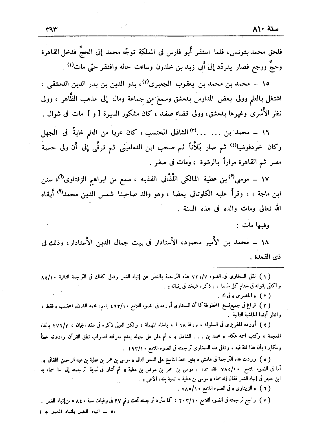محمّد بن الشاذلي المحتسب كان عريّاً من العلم غاية في الجهل، كان خردفوشيّاً ثم صار بلاّناً، ثم صحب ابن الدماميني، ثم ترقّى إلى أن ولي حسبة مصر ثم القاهرة مراراً بالرشوة، ومات في صفر.