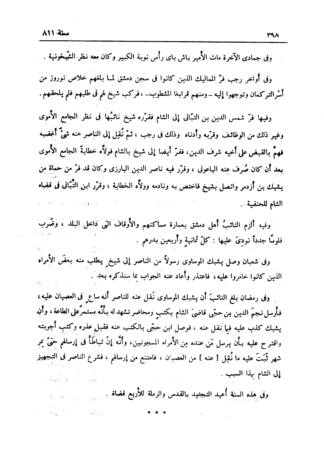 وفي جمادى الآخرة مات الأمير باش باي رأس نوبة الكبير وكان معه نظر الشيخونية.