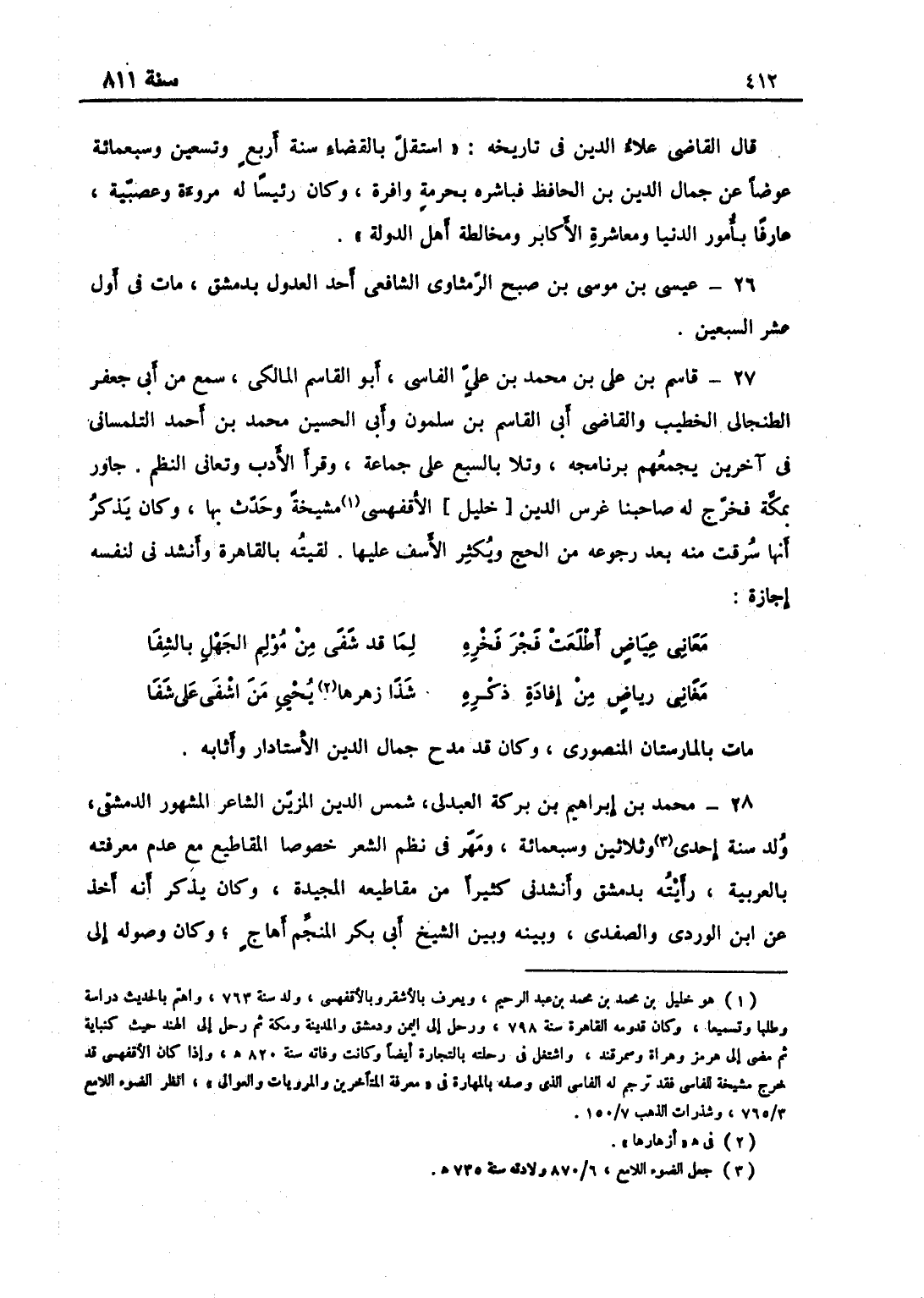 محمّد بن إبراهيم بن بركة العبدلي شمس الدين المزين الشاعر المشهور الدمشقي ولد سنة إحدى وثلاثين وسبعمائة ومهر في نظم الشعر خصوصاً المقاطيع من عدم معرفته بالعربية رأيته بدمشق وأنشدني كثيراً من مقاطيعه المجيدة وكان يذكر انه أخذ عن ابن الوردي والصفدي وبينه وبين الشيخ أبي بكر المنجم أهاجي وكان وصوله إلى