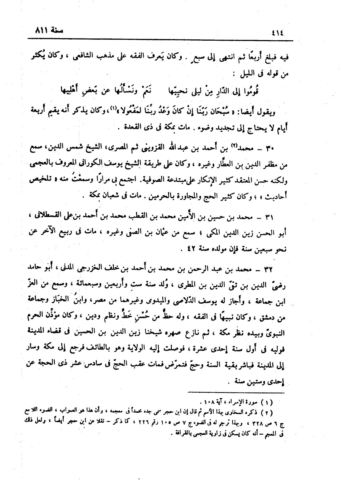 ويقول أيضاً: " سبحان ربنا إن كان وعد ربنا لمفعولا " وكان يذكر أنه يقيم أربعة أيام لا يحتاج إلى تجديد وضوء مات بمكة في ذي القعدة.