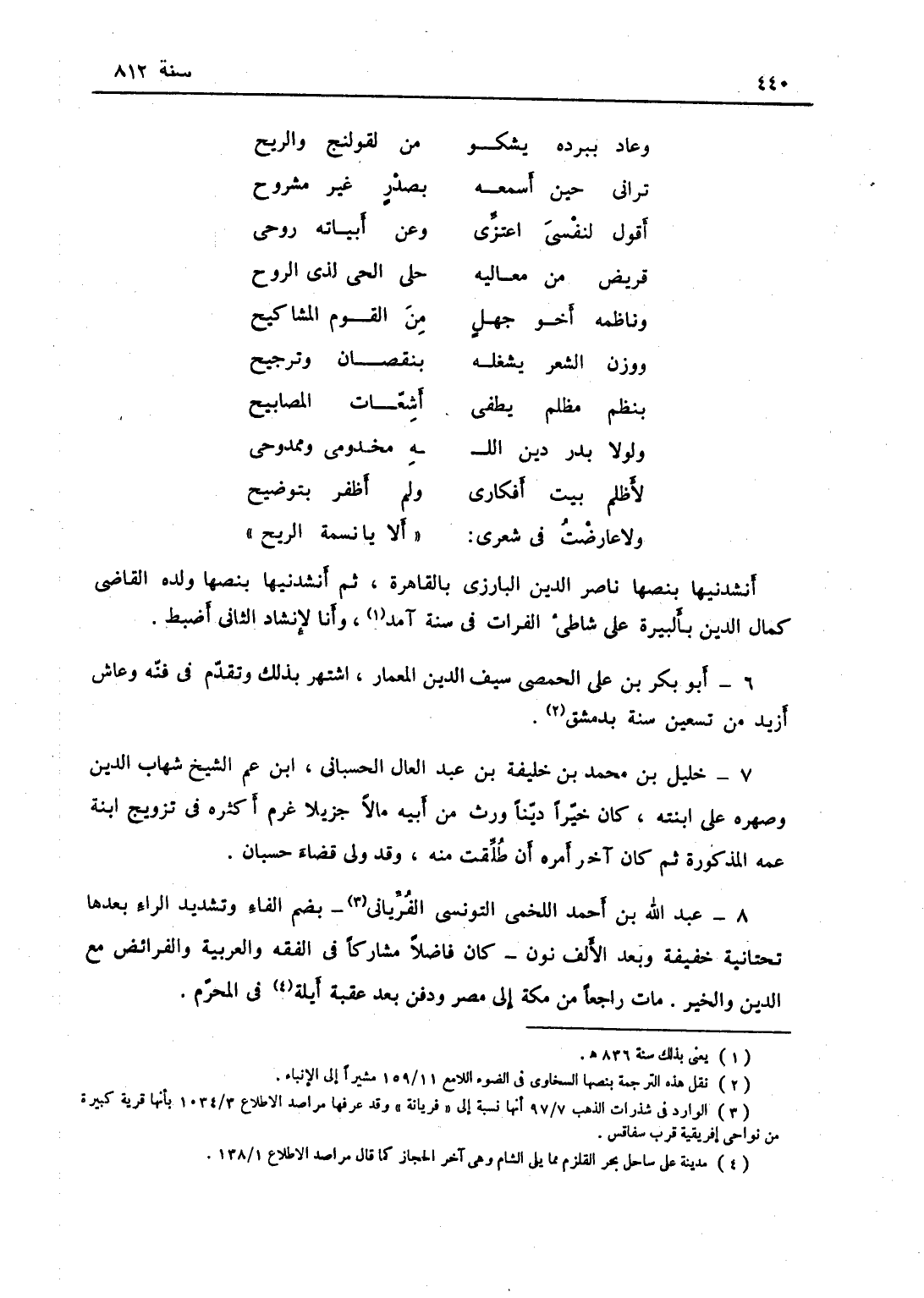 أنشدنيها بقصتها ناصر الدين البارزي بالقاهرة ثم أنشدنيها بقصتها ولده القاضي كمال الدين بالبيرة على شاطئ الفرات في سنة آمد وأنا للإنشاد الثاني أضبط.