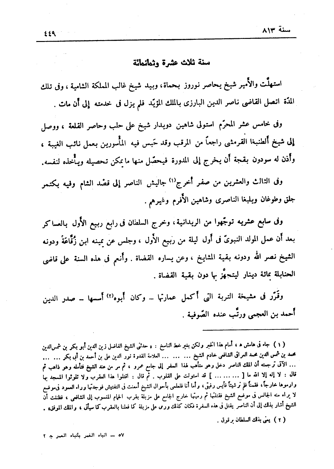 استهلت والأمير شيخ يحاصر الأمير نوروز بحماة وبيد شيخ غالب المملكة الشامية وفي تلك المدة اتصل القاضي ناصر الدين البارزي بالملك المؤيد، فلم يزل في خدمته إلى أن مات في أيام سلطنته.