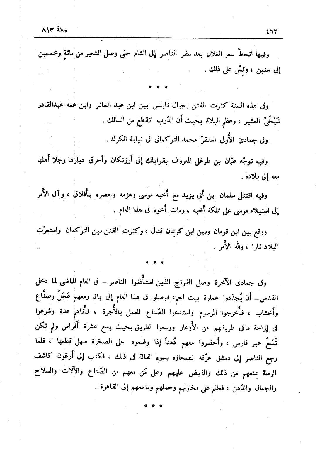 وفيها انحط سعر الغلال بعد سفر الناصر إلى الشام حتى وصل الشعير من مائة وخمسين إلى ستين وقس على ذلك.