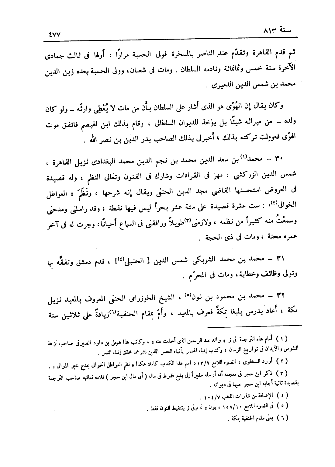 محمّد بن سعد الدين محمّد بن نجم الدين محمّد البغدادي نزيل القاهرة شمس الدين الزركشي، مهر في القراآت وشارك في الفنون وتعانى النظم، وله قصيدة في العروض استحسنها القاضي مجد الدين الحنفي ويقال إنه شرحها، ونظم العواطل الخوالي ست عشرة قصيدة على ستة عشر بحراً ليس فيها نقطة، وقد راسلني ومدحني وسمعت منه كثيراً من نظمه، ولازمني طويلاً ورافقني في السماع أحياناً، وجرت له، في آخر عمره محنة؛ ومات في ذي الحجة.