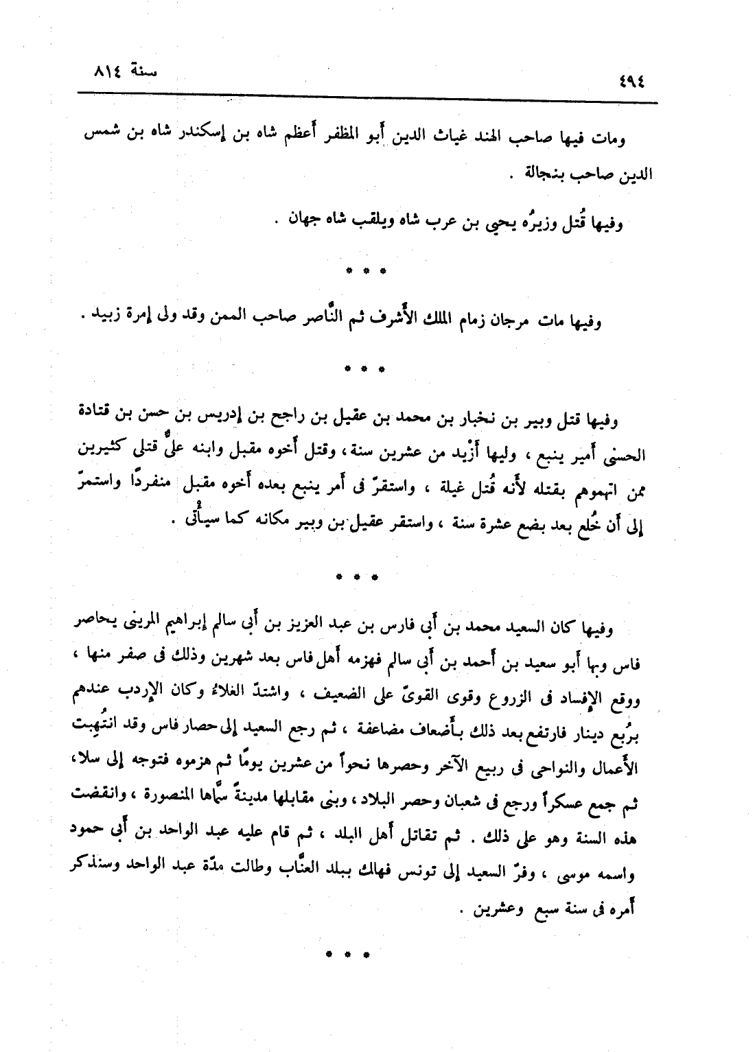 وفيها مات صاحب الهند غياث الدين أبو المظفر أعظم شاه بن اسكندر شاه بن شمس الدين صاحب بنكاله.
