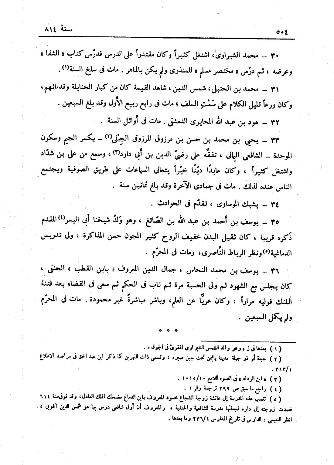 محمد بن الحنبلي شمس الدين شاهد القيمة، وكان من كبار الحنابلة وقدمائهم وكان ورعاً قليل الكلام على سمت السلف مات في رابع ربيع الأول وقد بلغ الستين.