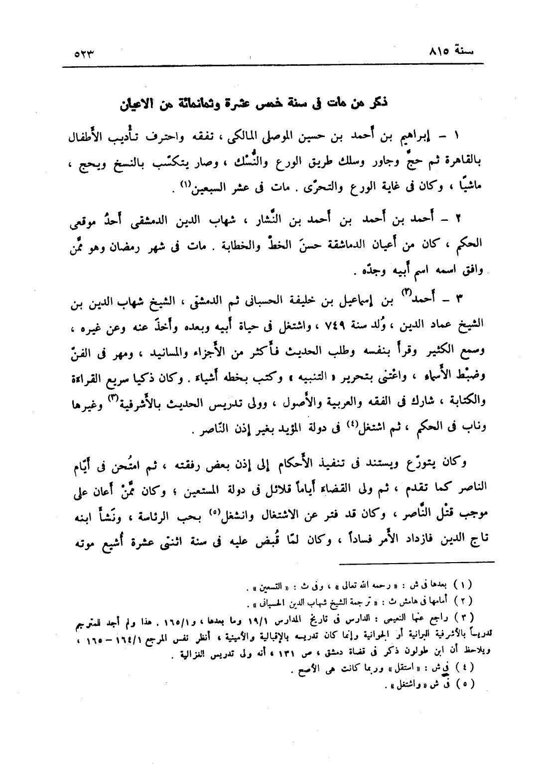 في سنة خمس عشرة وثمانمائة من الأعيان