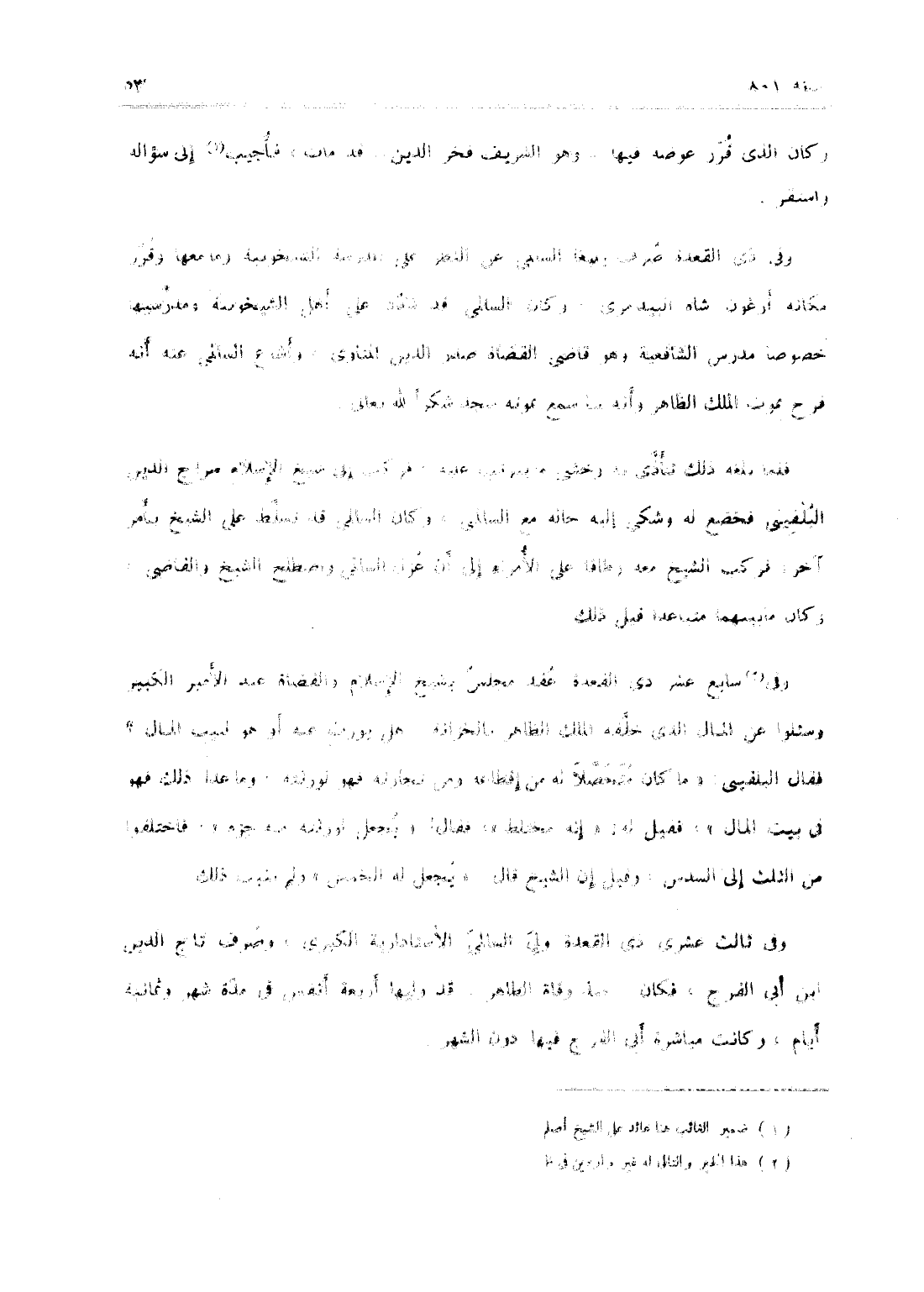 وفي سابع عشر من ذي القعدة عقد مجلس بشيخ الإسلام والقضاة عند الأمير الكبير وسئلوا عن المال الذي خلفه الملك الظاهر بالخزانة هل يورث عنه أو هو لبيت المال؟ فقال البلقيني: ما كان محصل له من إقطاعه ومن تجاراته فهو لورثته وما عدا ذلك فهو في بيت المال فقيل له إنه مختلط فقال: يجعل لورثته منه جزء فاختلفوا من الثلث إلى السدس، وقيل أن الشيخ قال: يجعل له الخمس، ولم يثبت ذلك.