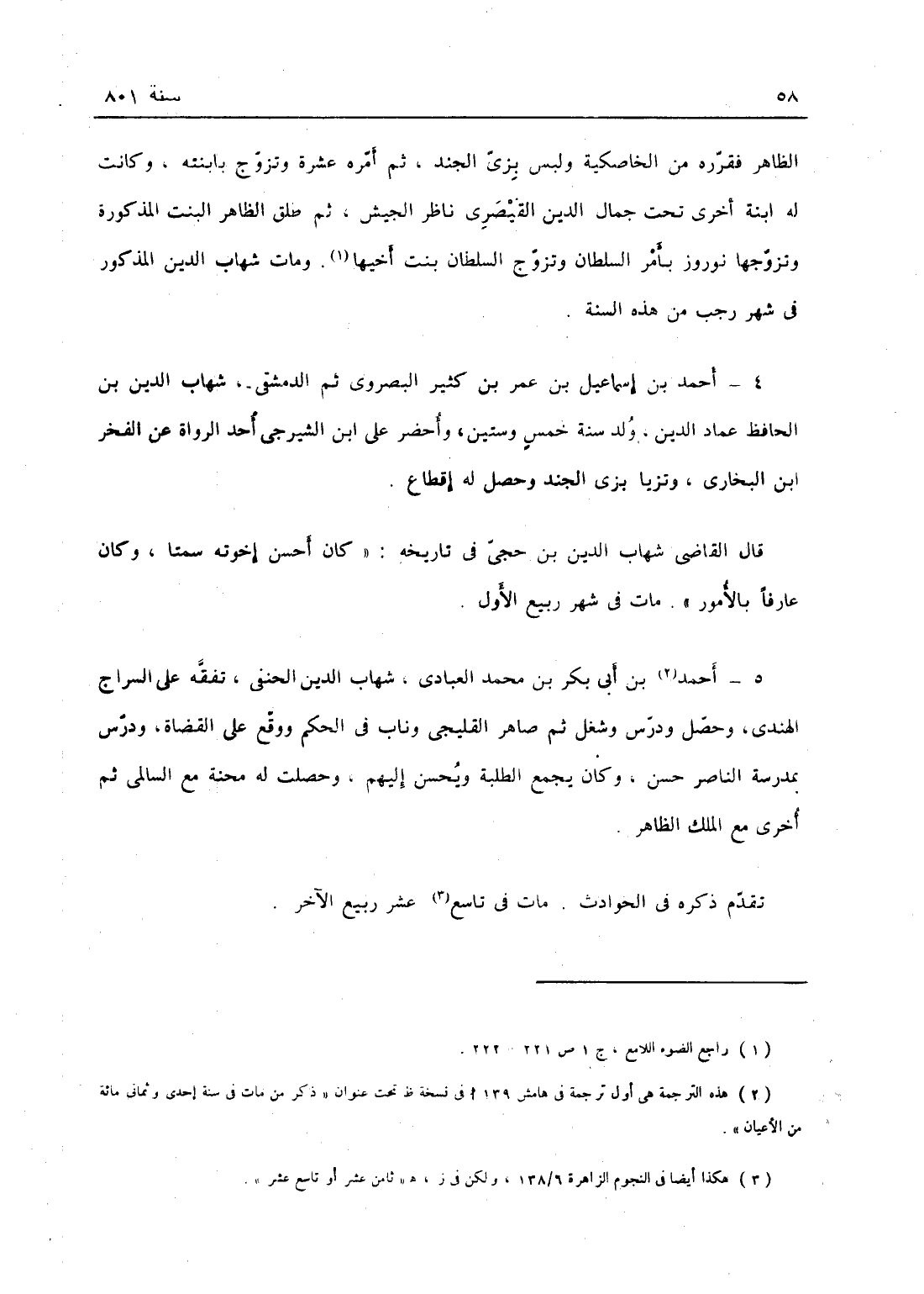 الظاهر فقرره من الخاصكية، ولبس بزي الجند، ثم أمره عشرة وتزوج ابنته، وكانت له ابنة أخرى تحت جمال الدين القيصري ناظر الجيش، ثم طلق الظاهر البنت المذكورة وتزوجها نوروز بأمر السلطان، وتزوج السلطان بنت أخيها؛ ومات شهاب الدين المذكور في شهر رجب من هذه السنة.