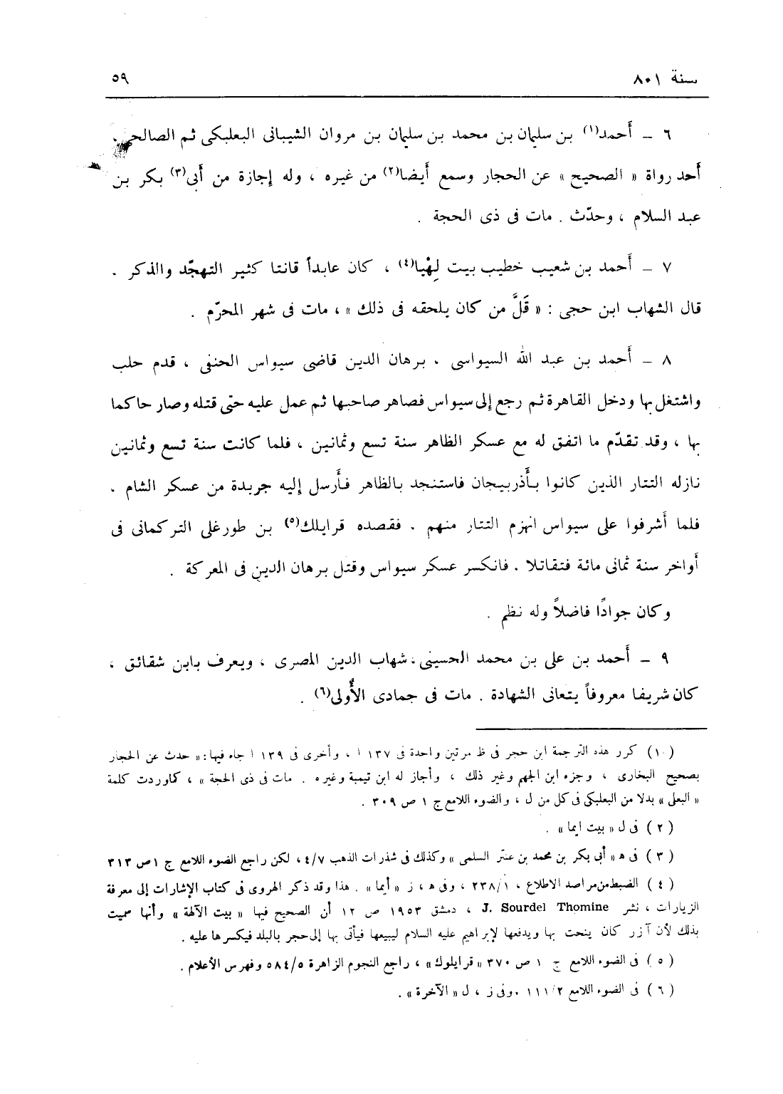أحمد بن عبد الله السيواسي برهان الدين قاضي سيواس الحنفي قدم حلب فاشتغل بها ودخل القاهرة ثم رجع إلى سيواس فصاهر صاحبها ثم عمل عليه حتى قتله وصار حاكماً بها، وقد تقدم ما اتفق له مع عسكر الظاهر سنة تسع وثمانين، فلما كان سنة تسع نازله التتار الذي كانوا بآذربيجان فاستنجد بالظاهر، فأرسل إليه جريدة من عساكر الشام، فلما أشرفوا على سيواس انهزم التتار منهم فقصده قرايللك بن طور علي التركماني في أواخر سنة ثمانمائة فتقاتلا، فانكسر عسكر سيواس وقتل برهان الدين في المعركة؛ وكان جواداً فاضلاً له نظم أحمد بن علي بن محمد الحسيني شهاب الدين المصري ويعرف بابن شقائق كان شريفاً معروفاً يتعانى الشهادة، مات في جمادى الآخرة.