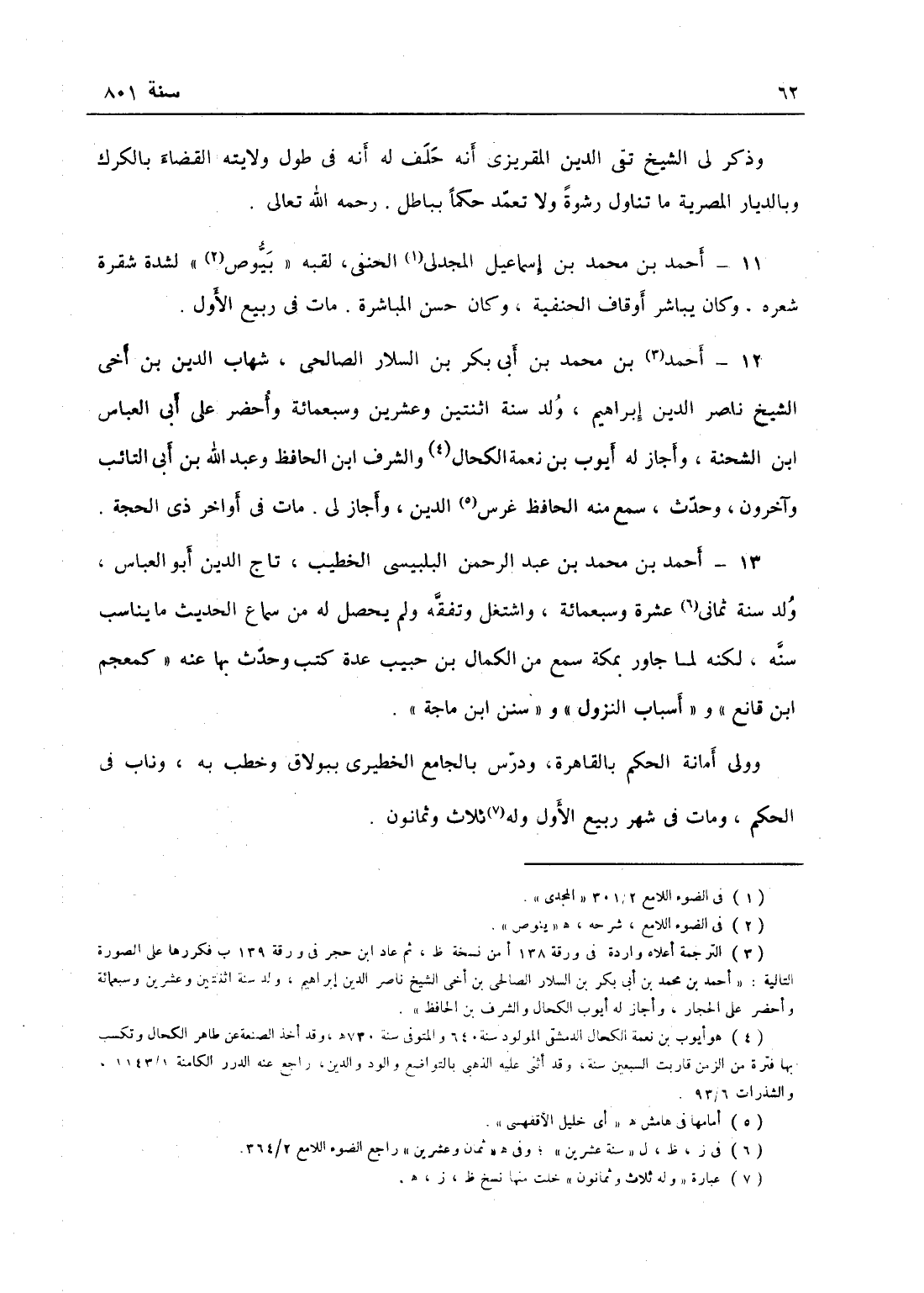 أحمد بن محمد بن عبد الرحمن البلبيسي الخطيب تاج الدين أبو العباس ولد سنة ثمان وعشرين وسبعمائة واشتغل وتفقه ولم يحصل له من سماع الحديث ما يناسب سنه لكنه لما جاور بمكة سمع من الكمال ابن حبيب عدة كتب حدث بها عنه كمعجم ابن قانع وأسباب النزول وسنن ابن ماجة وولي أمانة الحكم بالقاهرة ودرس بجامع الخطيري وخطب به وناب في الحكم ببولاق ومات في شهر ربيع الأول.