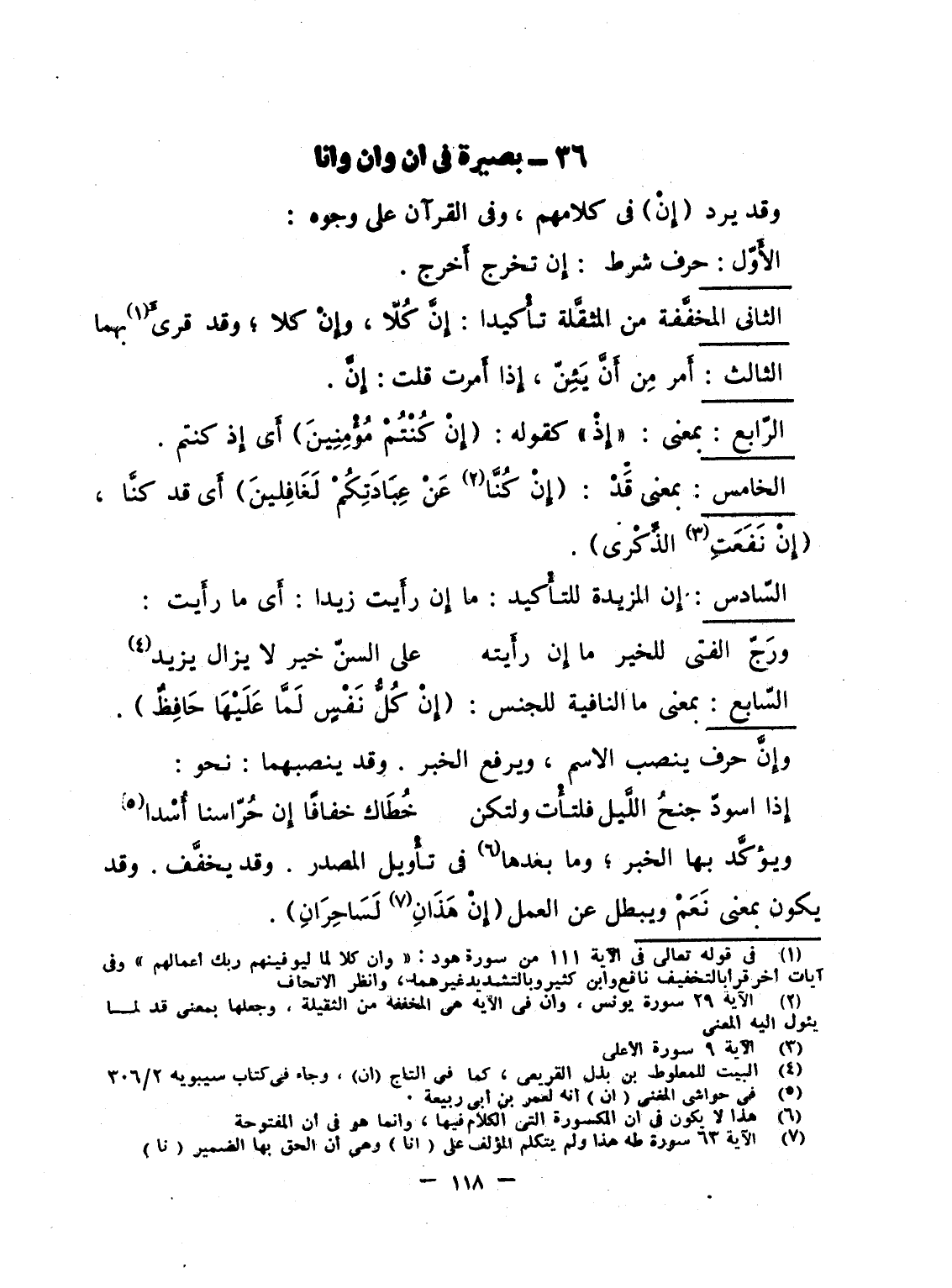 وقد يرد (إِنْ) فى كلامهم، وفى القرآن على وجوهِ:
