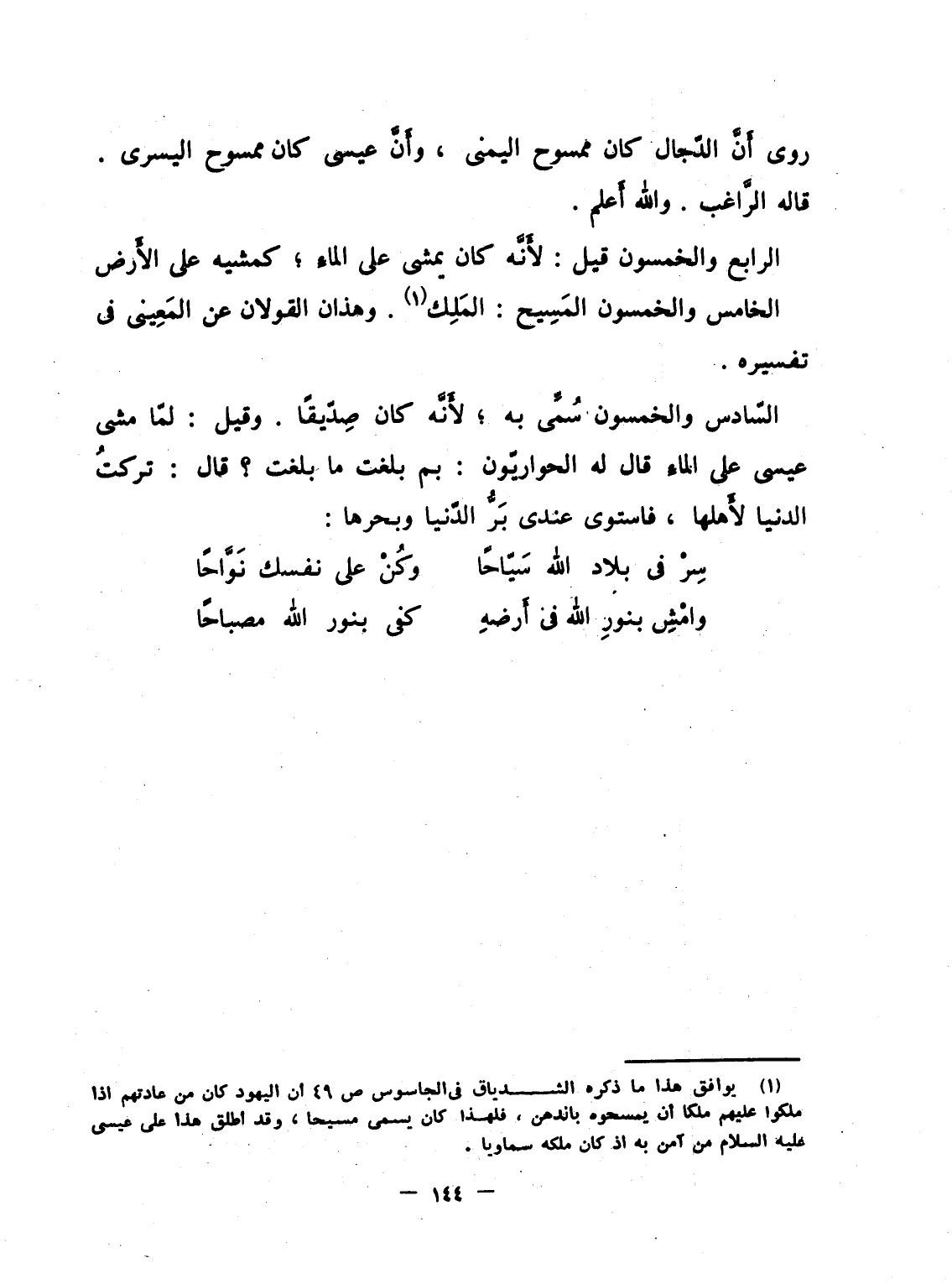 الخامس والخمسون المَسِيح: المَلِك. وهذان القولان عن المَعِينى فى تفسيره.