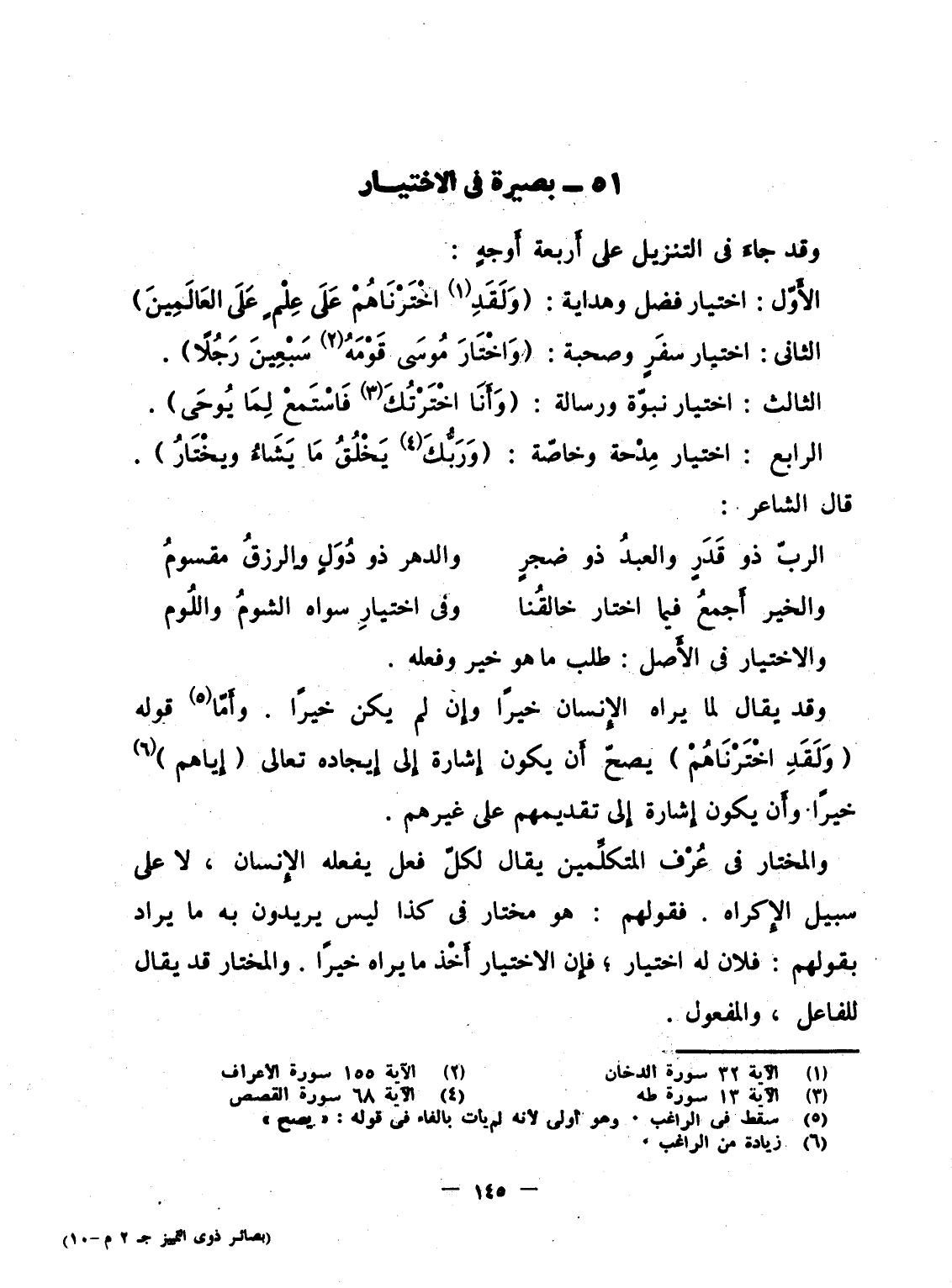 والاختيار فى الأَصل: طلب ما هو خير وفعله.