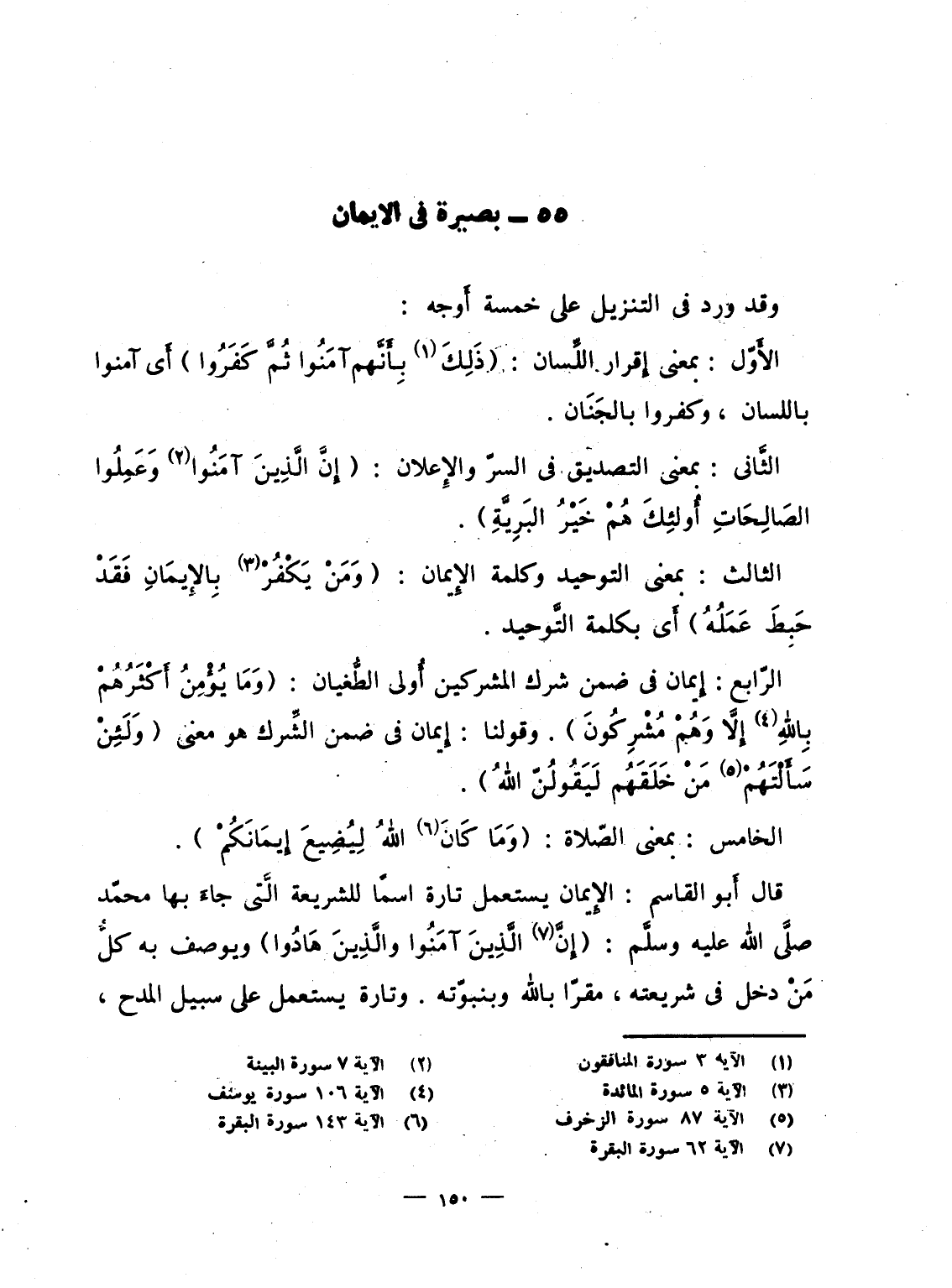 الثَّانى: بمعنى التصديق فى السرّ والإِعلان: {إِنَّ الذين آمَنُواْ وَعَمِلُواْ الصالحات أولائك هُمْ خَيْرُ البرية} .