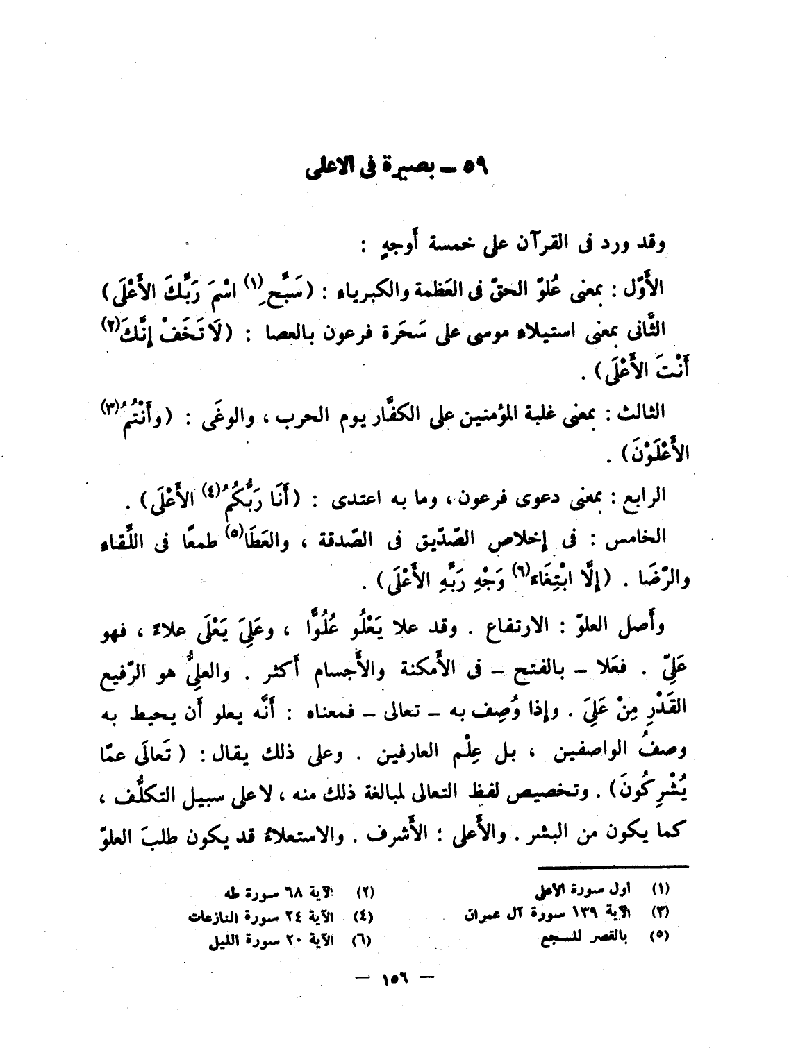 الأَوّل: بمعنى عُلوّ الحقّ فى العَظمة والكبرياءِ: {سَبِّحِ اسم رَبِّكَ الأعلى} .