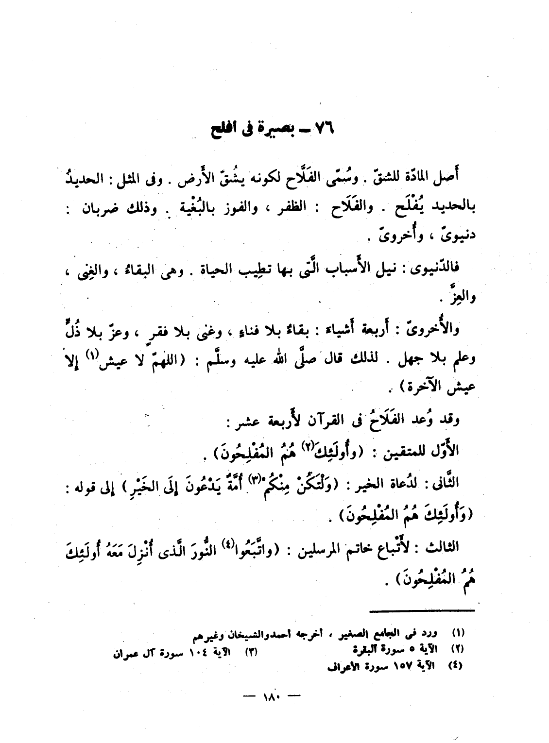 وقد وُعد الفَلاَحُ فى القرآن لأَربعة عشر: