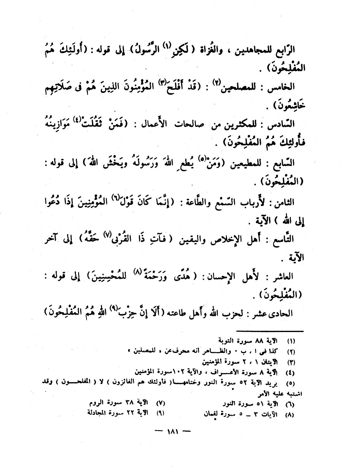 الحادى عشر: لحزب الله وأَهل طاعته {أَلاَ إِنَّ حِزْبَ الله هُمُ المفلحون} .