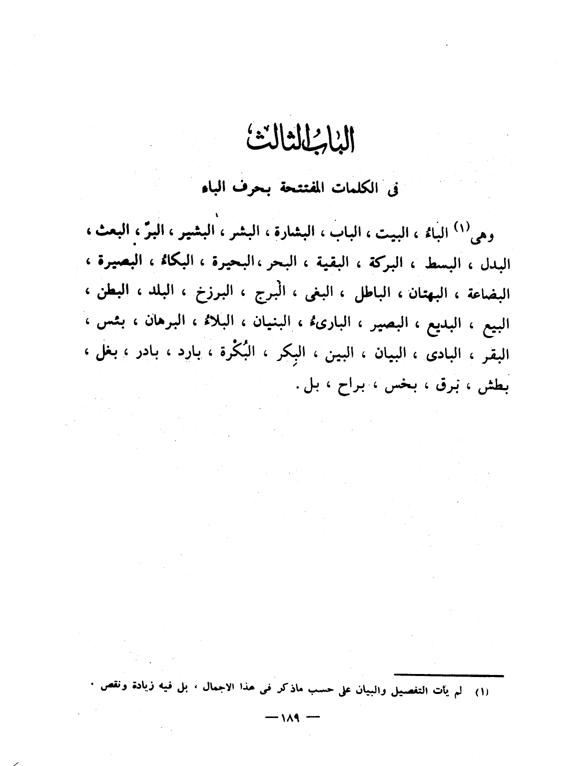 الباب الثالث - فى الكلمات المفتتحة بحرف الباء