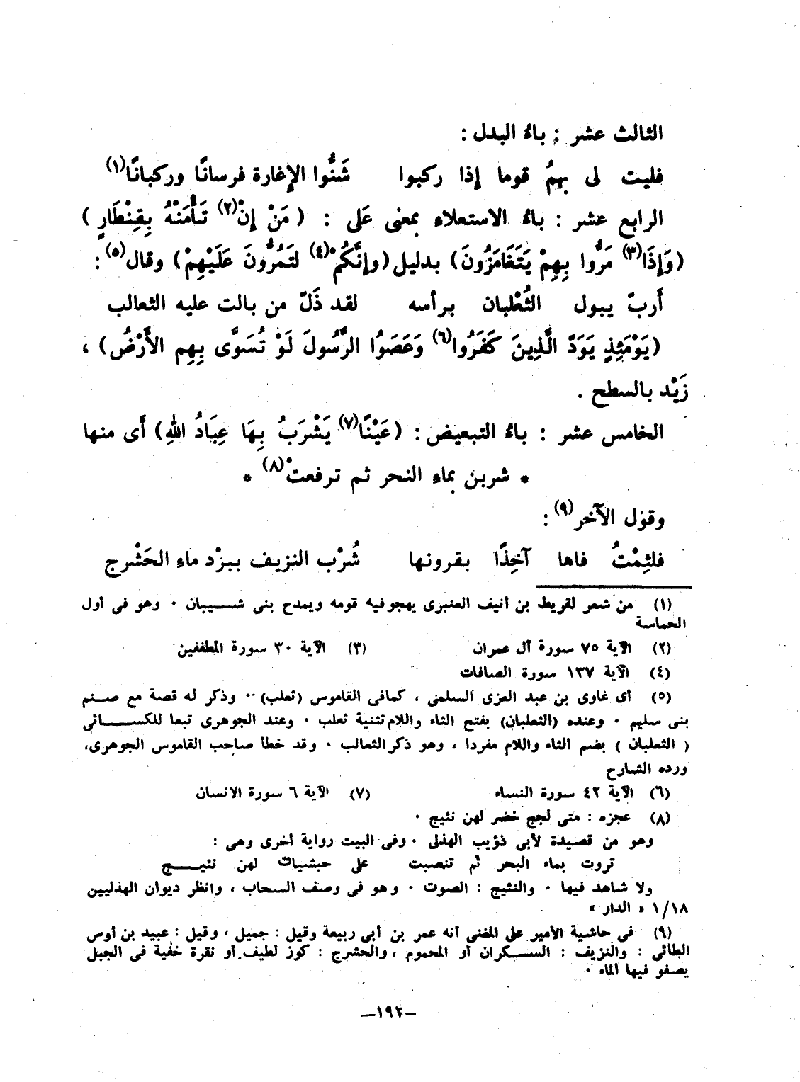 الخامس عشر: باءُ التبعيض: {عَيْناً يَشْرَبُ بِهَا عِبَادُ الله} أَى منها.