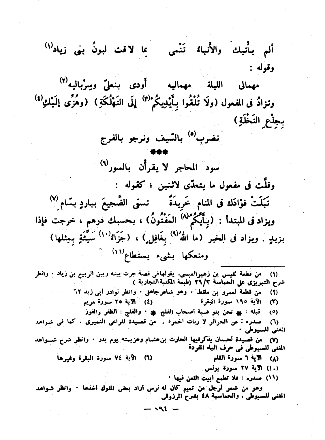 ويزاد فى المبتدأ: {بِأَيِّكُمُ المفتون} ، بحسبك درهم، خرجت فإِذا بزيدٍ. ويزاد فى الخبر {وَمَا الله بِغَافِلٍ} ، {جَزَآءُ سَيِّئَةٍ بِمِثْلِهَا} .