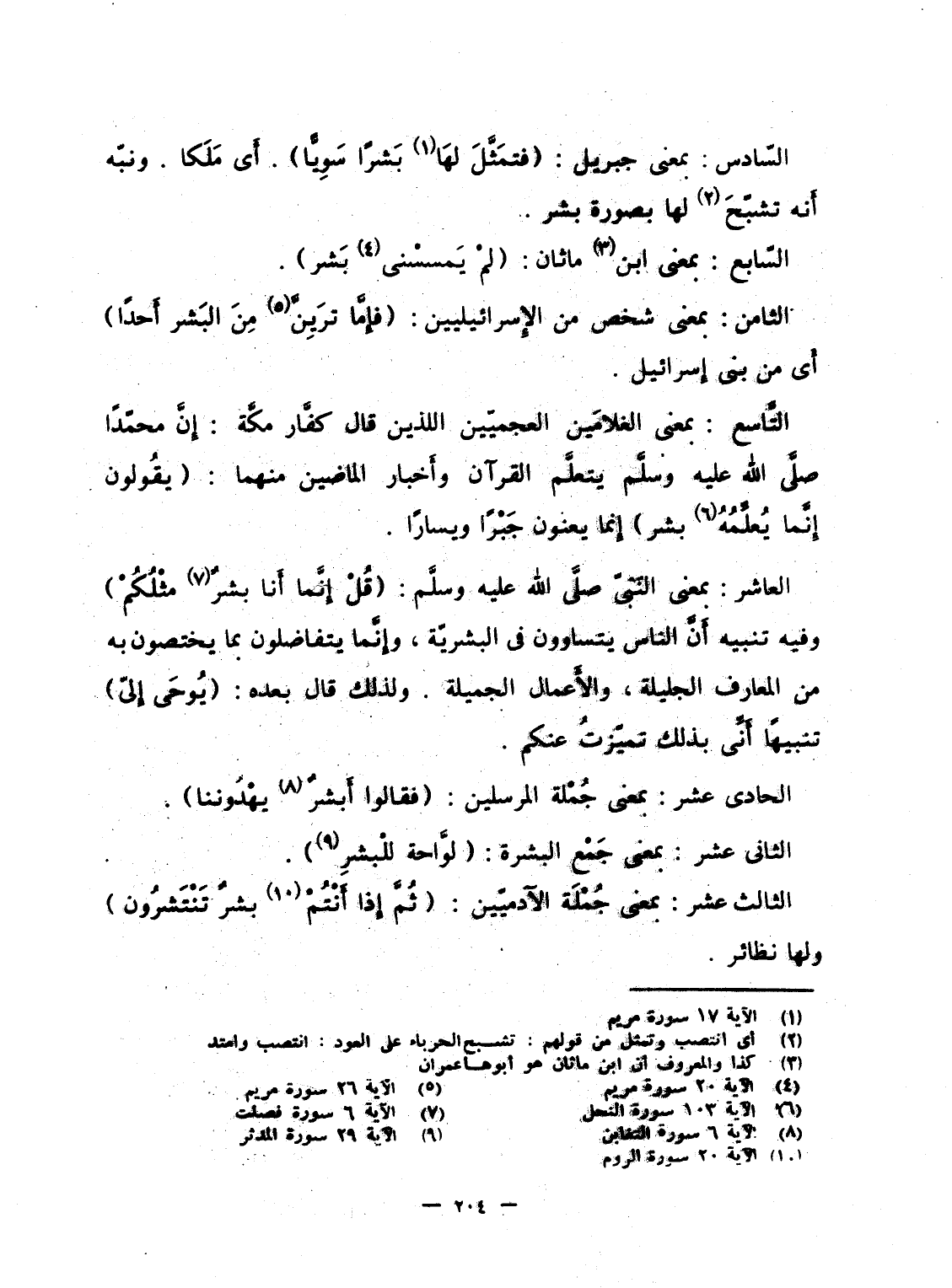 التَّاسع: بمعنى الغلامَين العجميّين اللذين قال كفَّار مكّة: إِنَّ محمّداً صلَّى الله عليه وسلَّم يتعلَّم القرآن وأَخبار الماضين منهما: {يَقُولُونَ إِنَّمَا يُعَلِّمُهُ بَشَرٌ} إِنما يعنون جَبْراً ويساراً.