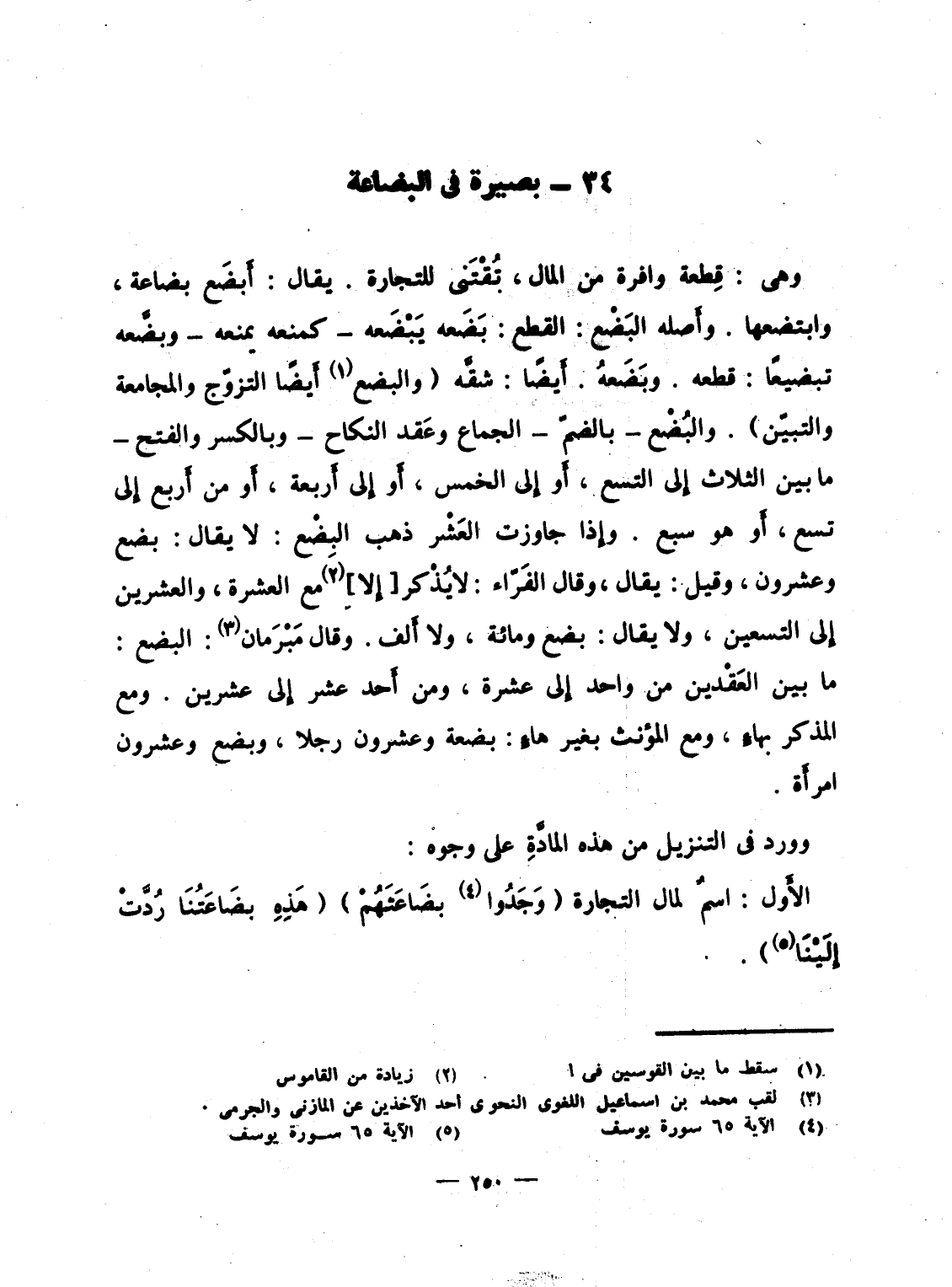 الأَول: اسمٌ لمال التجارة {وَجَدُواْ بِضَاعَتَهُمْ} {هاذه بِضَاعَتُنَا رُدَّتْ إِلَيْنَا} .
