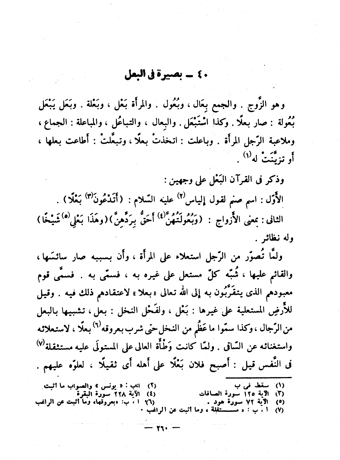 الثانى: بمعنى الأَزواج: {وَبُعُولَتُهُنَّ أَحَقُّ بِرَدِّهِنَّ} {وهاذا بَعْلِي شَيْخاً} وله نظائر.
