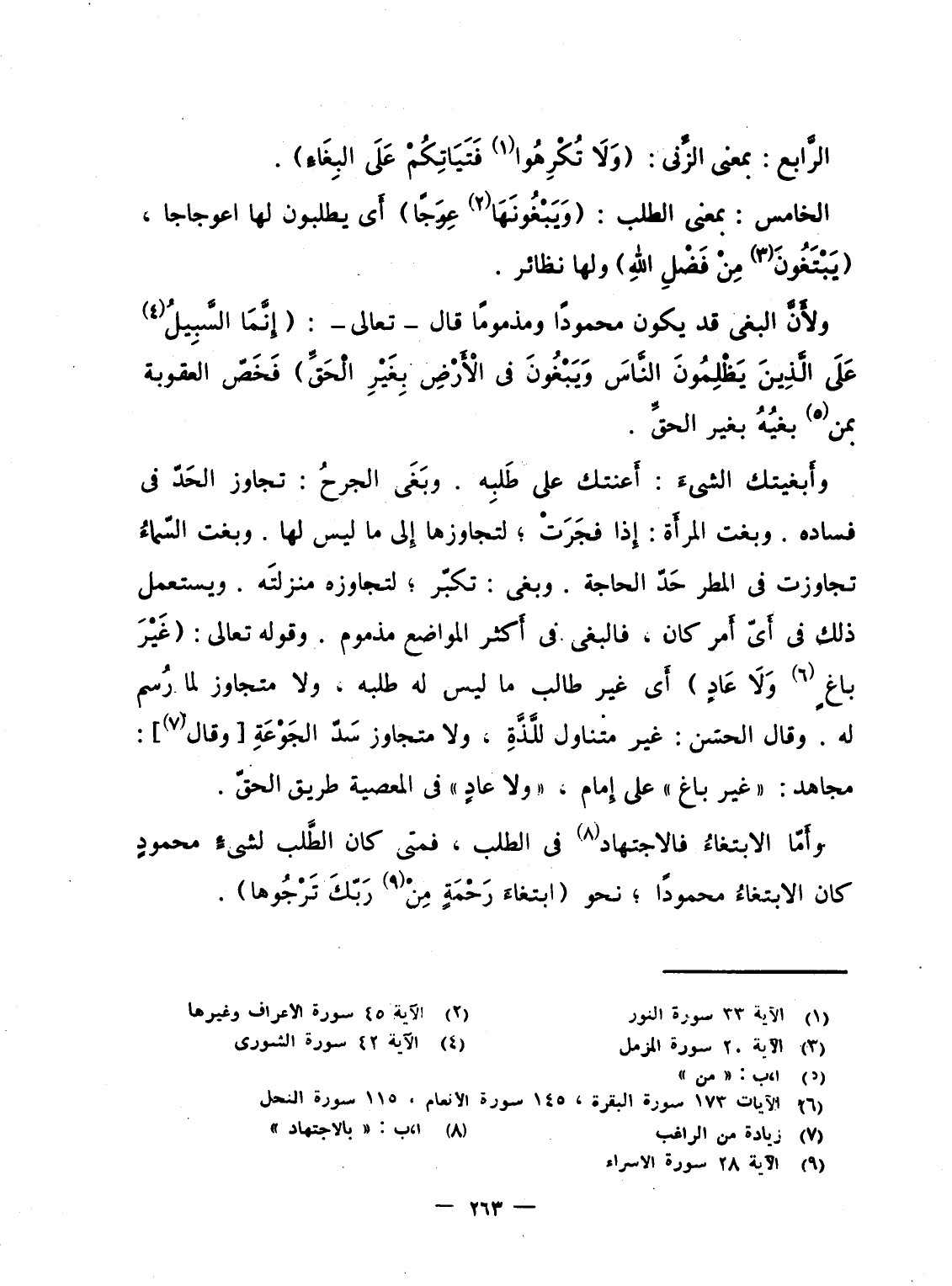 ولأَنَّ البغى قد يكون محموداً ومذموماً قال - تعالى -: {إِنَّمَا السبيل عَلَى الذين يَظْلِمُونَ الناس وَيَبْغُونَ فِي الأرض بِغَيْرِ الحق} فَخَصّ العقوبة بمن بغيُهُ بغير الحقِّ.