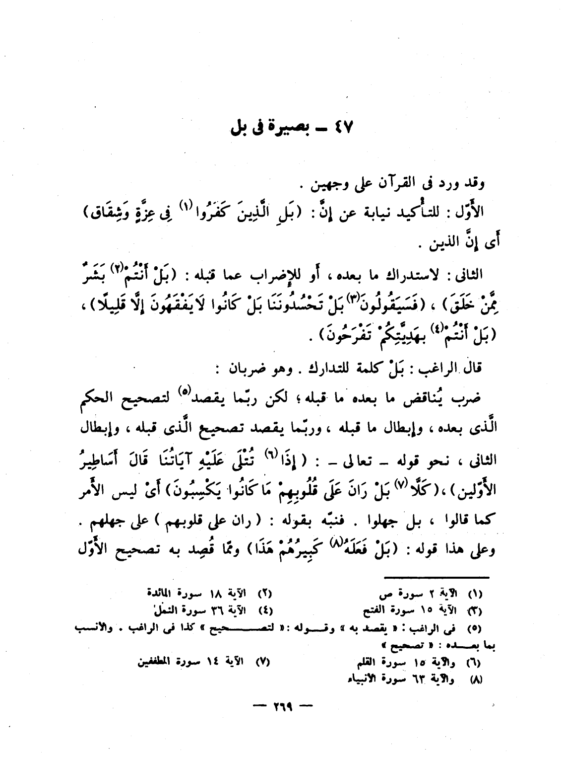 الأَوّل: للتأْكيد نيابة عن إِنَّ: {بَلِ الذين كَفَرُواْ فِي عِزَّةٍ وَشِقَاقٍ} أَى إِنَّ الذين.