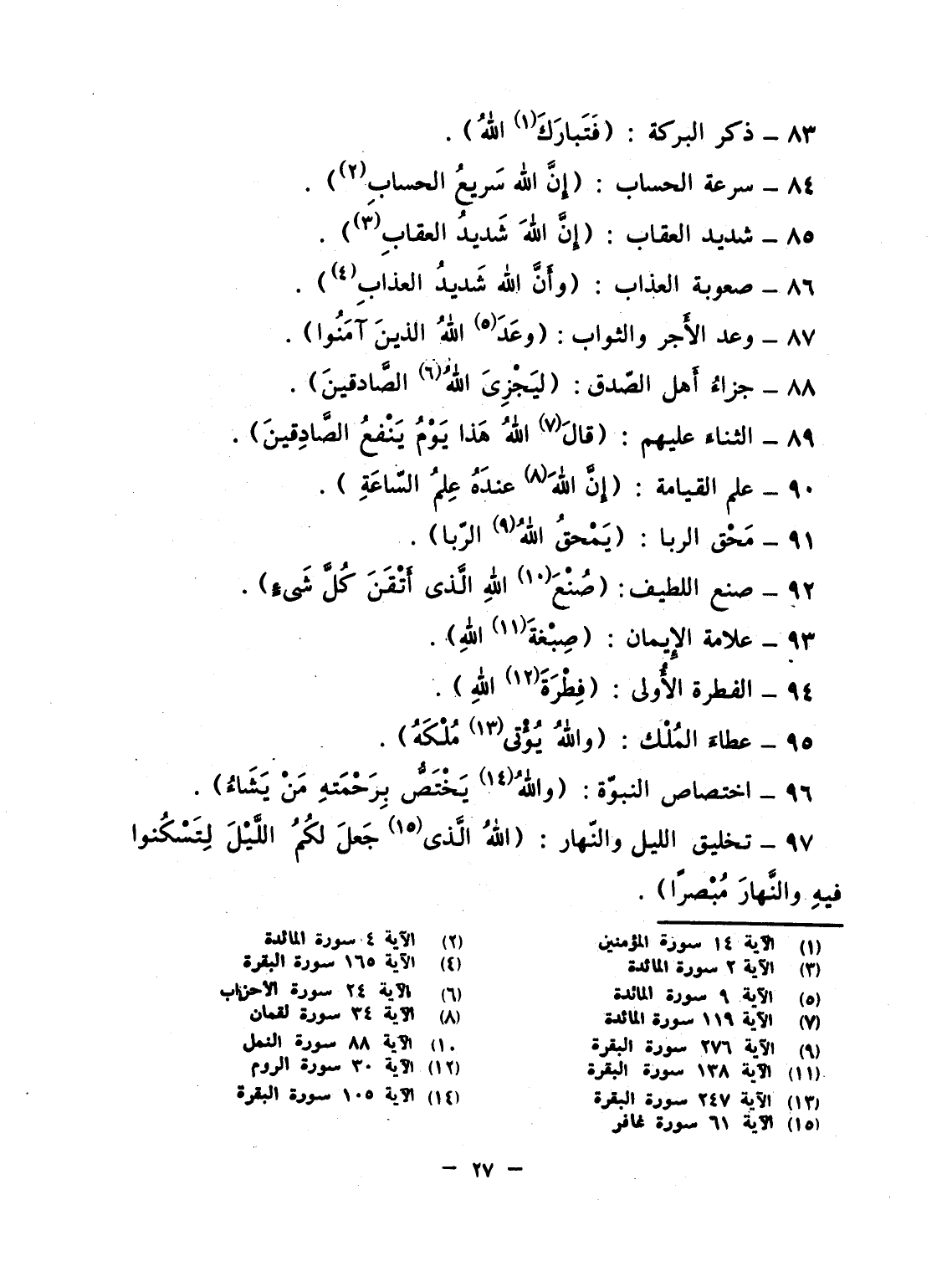 84- سرعة الحساب: {إِنَّ الله سَرِيعُ الحساب} .