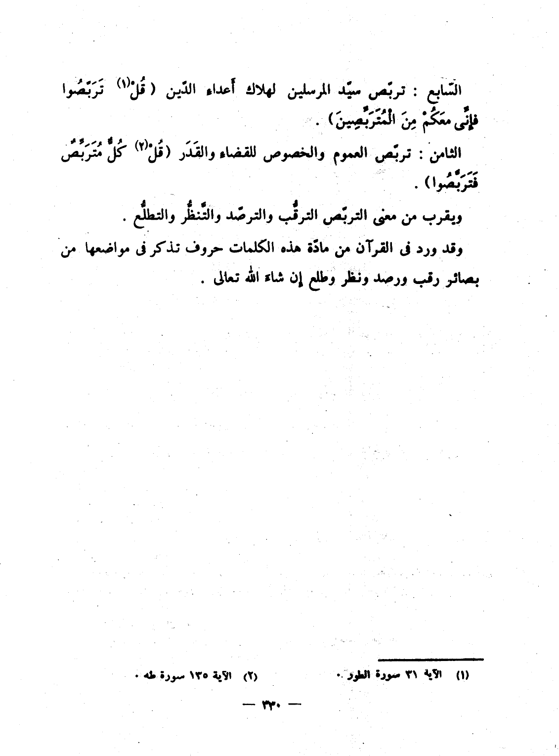 وقد ورد فى القرآن من مادّة هذه الكلمات حروف تذكر فى مواضعها من بصائر رقب ورصد ونظر وطلع إِن شاءَ الله تعالى.