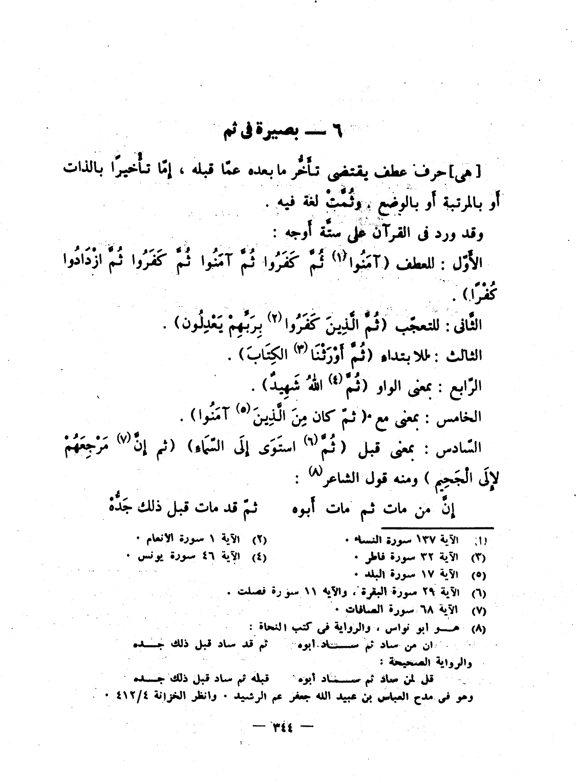 الأَوّل: للعطف {آمَنُواْ ثُمَّ كَفَرُواْ ثُمَّ آمَنُواْ ثُمَّ كَفَرُواْ ثُمَّ ازدادوا كُفْراً} .