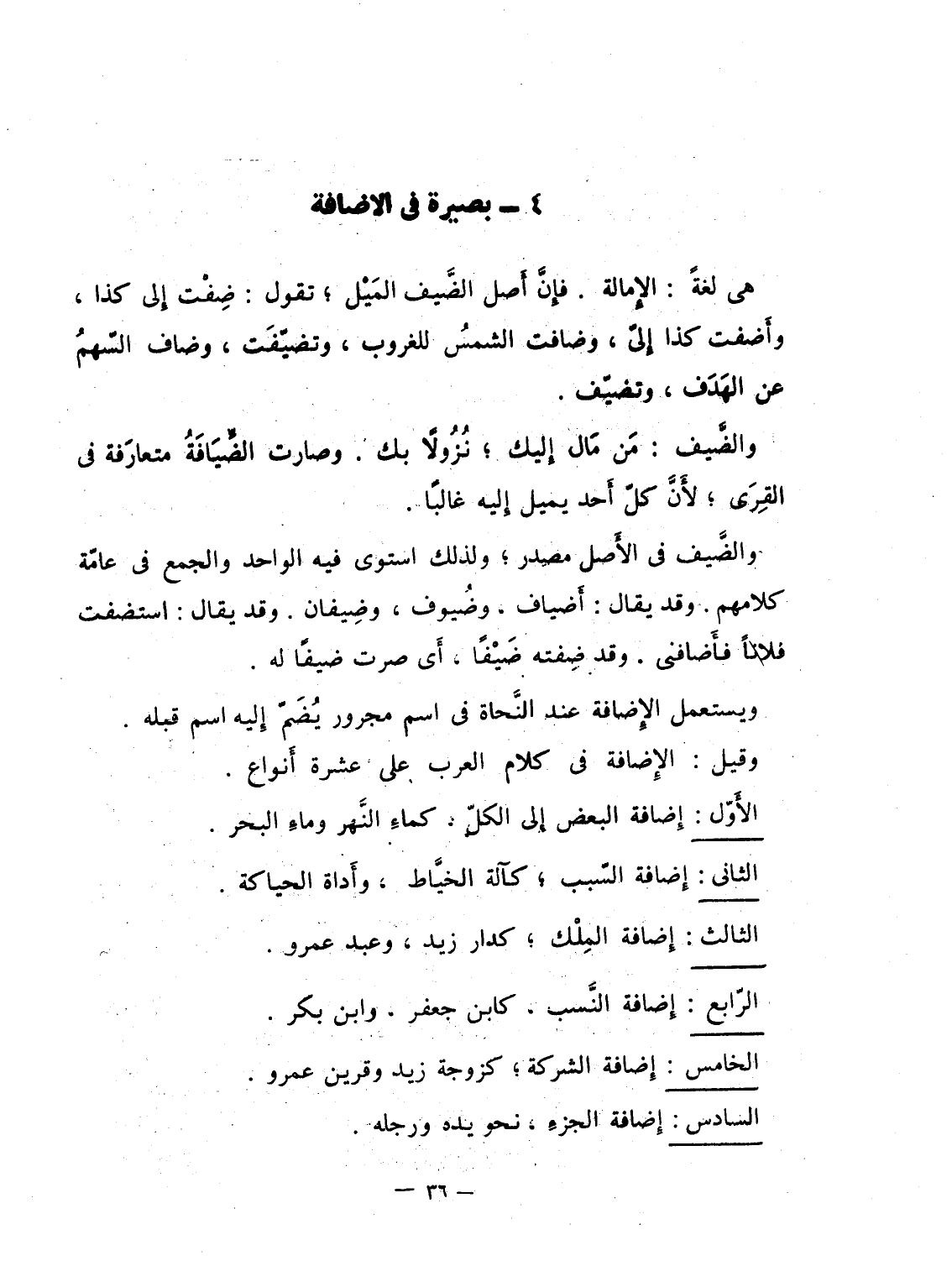 وقيل: الإِضافة فى كلام العرب على عشرة أَنواع.