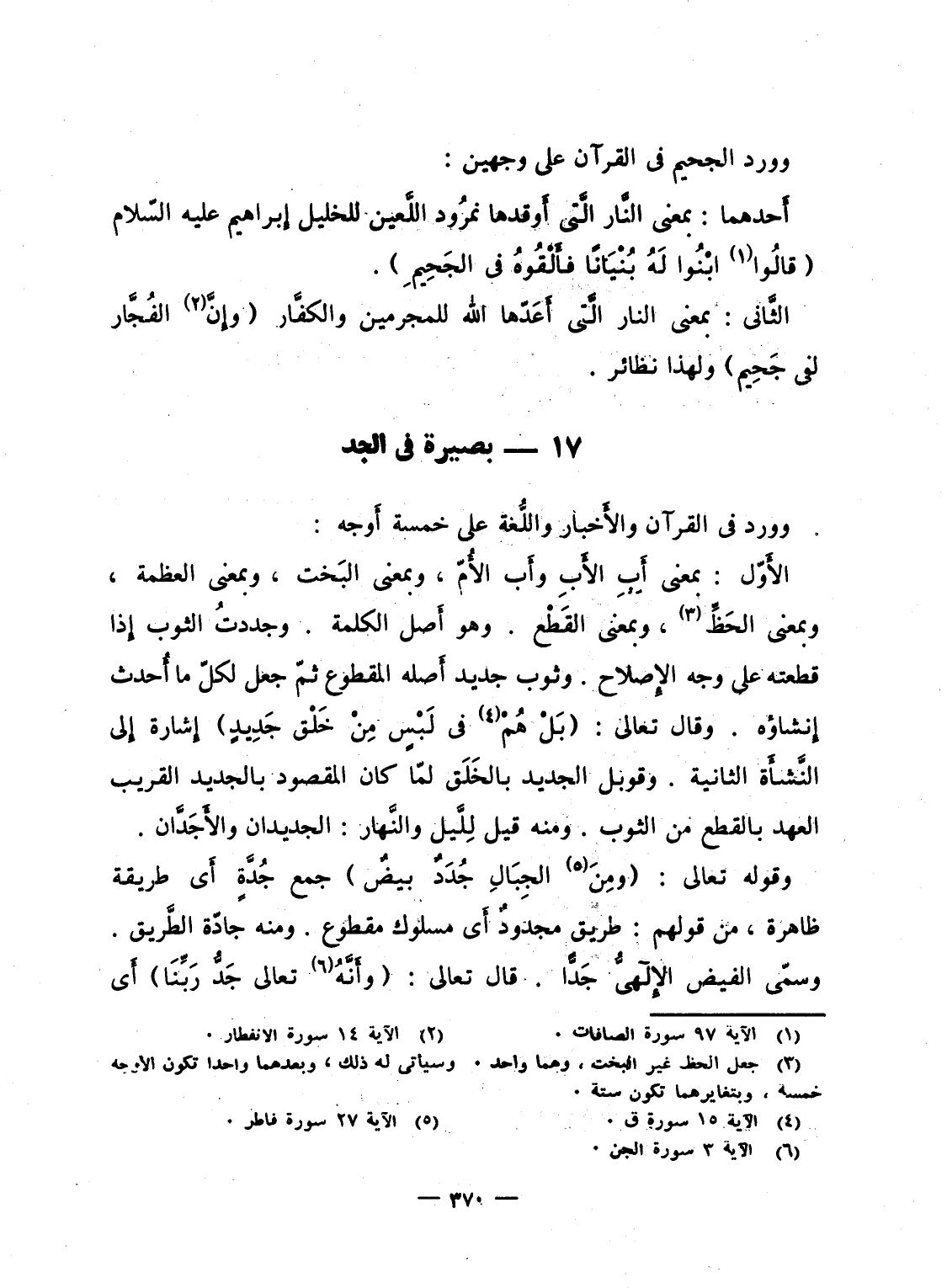 الثَّانى: بمعنى النار الَّتى أَعَدّها الله للمجرمين والكفَّار {وَإِنَّ الفجار لَفِي جَحِيمٍ} ولهذا نظائر.
