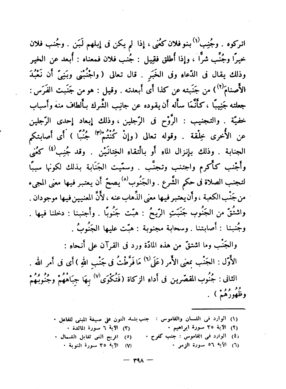 والجَنْب وما اشتقّ من هذه المادّة ورد فى القرآن على أَنحاءِ: