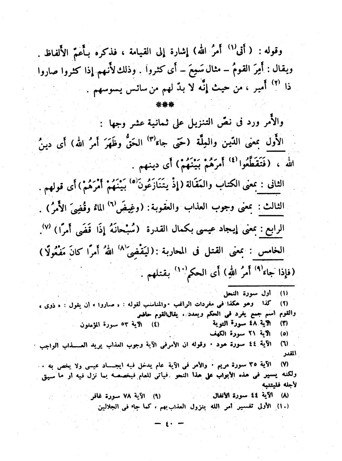 وقوله: {أتى أَمْرُ الله} إِشارة إِلى القيامة، فذكره بأَعمّ الأَلفاظ. ويقال: أَمِرَ القومُ - مثال سَمِعَ - أَى كثروا. وذلك لأَنهم إِذا كثروا صاروا ذا أَمير، من حيث إِنَّه لا بدّ لهم من سائس يسوسهم.