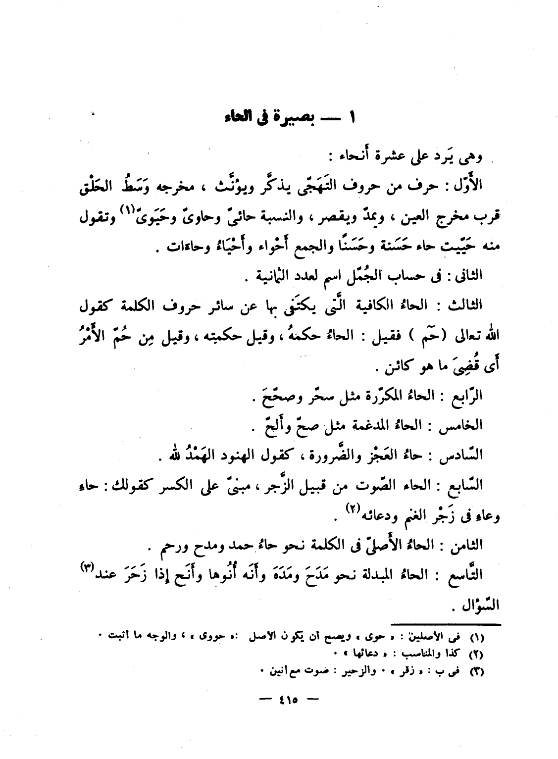 الأَوّل: حرف من حروف التَهَجّى يذكَّر ويؤنَّث، مخرجه وَسَطُ الحَلْق قرب مخرج العين، ويمدّ ويقصر، والنسبة حائىّ وحاوىّ وحَيَوىّ وتقول منه حَيّيت حاء حَسَنة وحَسَناً والجمع أَحْواء وأَحْيَاءُ وحاءَات.