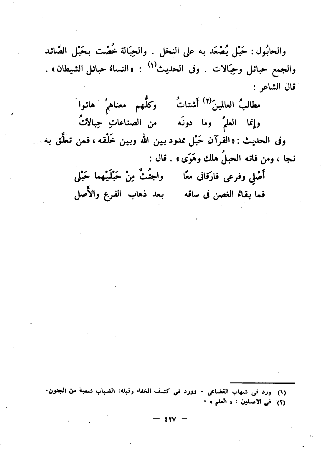 وإِنما العلمُ وما دونَه ... من الصناعاتِ حِبالاتُ