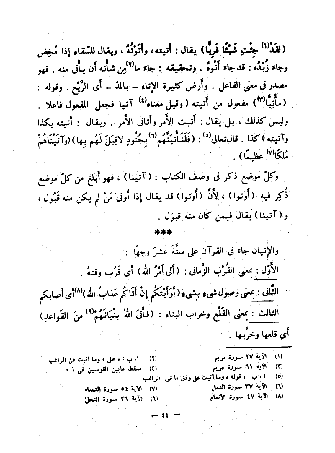 والإِتيان جاءَ فى القرآن على ستَّةَ عشرَ وجهاً: