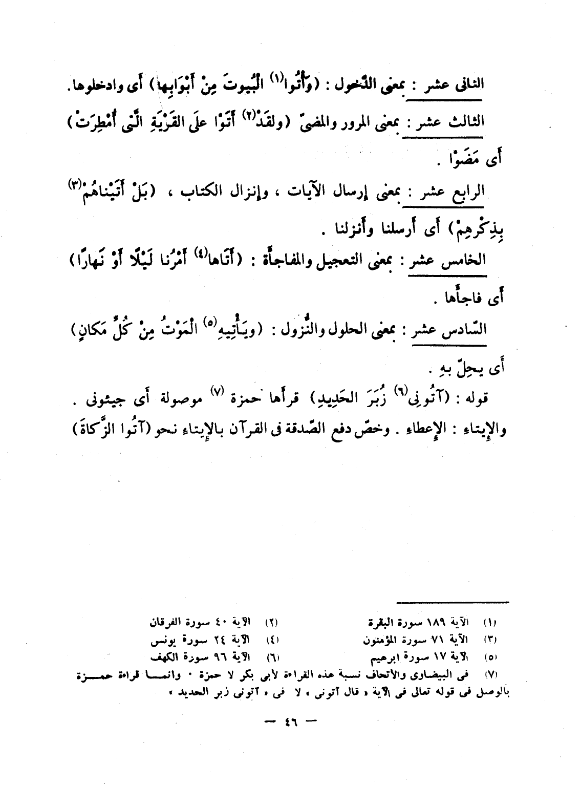الخامس عشر: بمعنى التعجيل والمفاجأَة: {أَتَاهَآ أَمْرُنَا لَيْلاً أَوْ نَهَاراً} أَى فاجأَها.