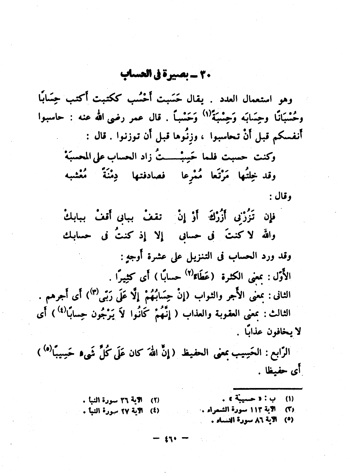 وقد ورد الحساب فى التنزيل على عشرة أَوجهٍ: