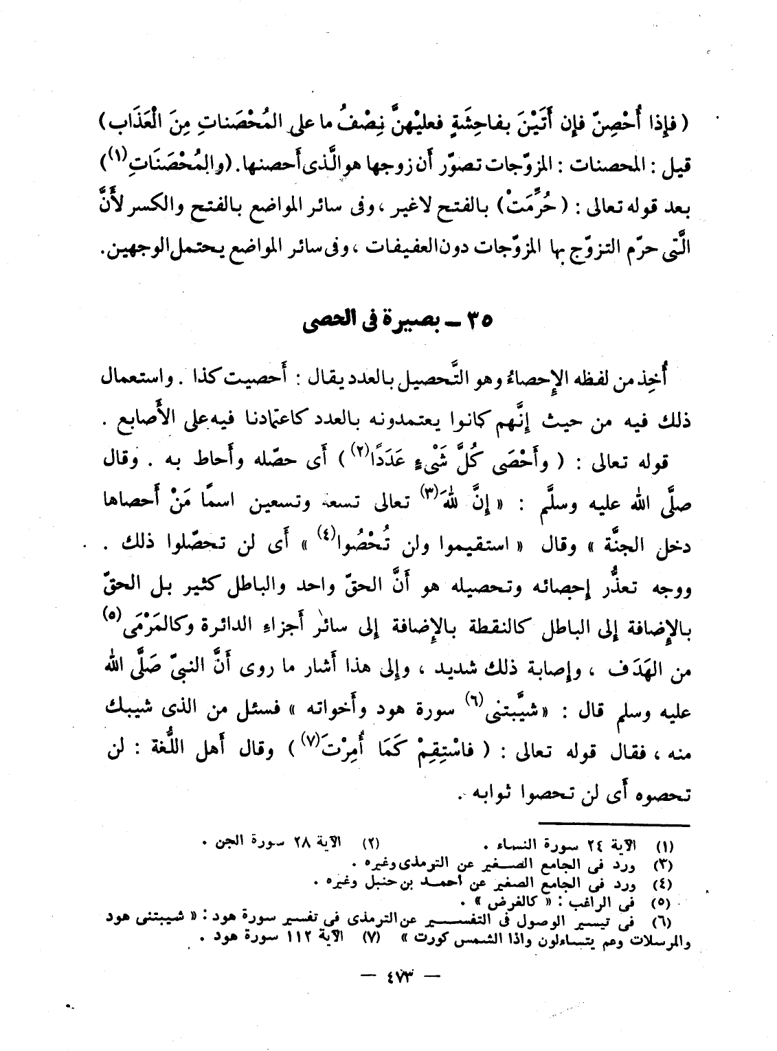 {فَإِذَآ أُحْصِنَّ فَإِنْ أَتَيْنَ بِفَاحِشَةٍ فَعَلَيْهِنَّ نِصْفُ مَا عَلَى المحصنات مِنَ العذاب} قيل: المحصنات: المزوّجات تصوّر أَن زوجها هو الَّذى أَحصنها. {والمحصنات} بعد قوله تعالى: {حُرِّمَتْ} بالفتح لا غير، وفى سائر المواضع بالفتح والكسر لأَنَّ الَّتى حرّم التزوّج بها المزوّجات دون العفيفات، وفى سائر المواضع يحتمل الوجهين.