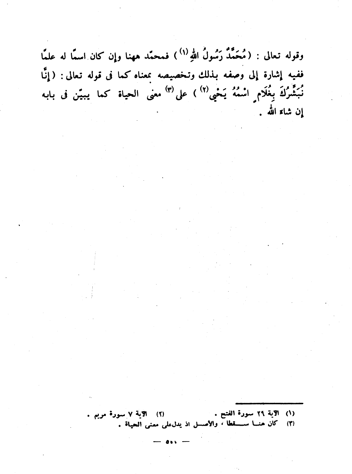 وقوله تعالى: {مُّحَمَّدٌ رَّسُولُ الله} فمحمّد ههنا وإِن كان اسماً له علماً ففيه إِشارة إِلى وصفه بذلك وتخصيصه بمعناه كما فى قوله تعالى: {إِنَّا نُبَشِّرُكَ بِغُلاَمٍ اسمه يحيى} على معنى الحياة كما يبيّن فى بابه إِن شاءَ الله.