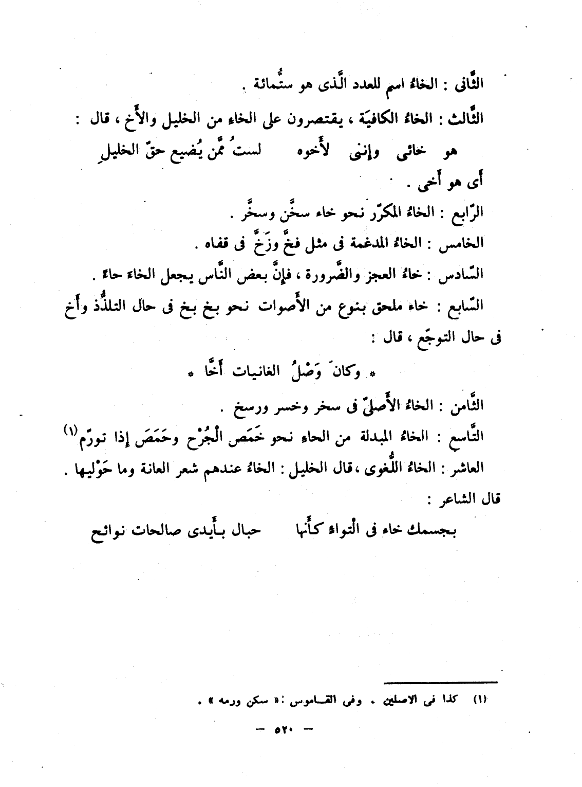 الثَّالث: الخاءُ الكافيَة، يقتصرون على الخاءِ من الخليل والأَخ، قال: