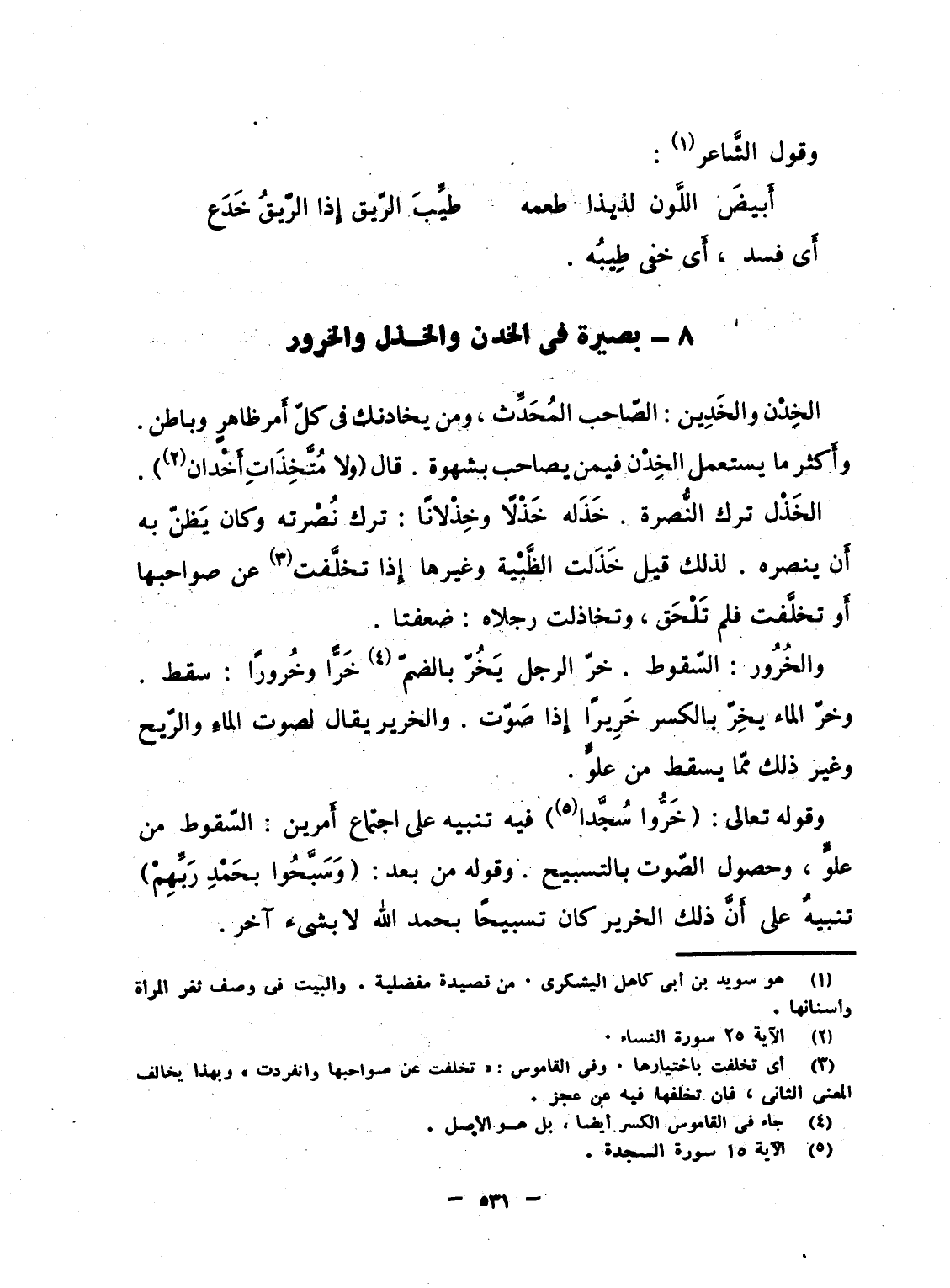 والخُرُور: السّقوط. خرّ الرجل يَخُرّ بالضمّ خَرّاً وخُروراً: سقط. وخرّ الماء يخِرّ بالكسر خَرِيراً إِذا صَوّت. والخرير يقال لصوت الماءِ والرّيح وغير ذلك ممّا يسقط من علوٍّ.