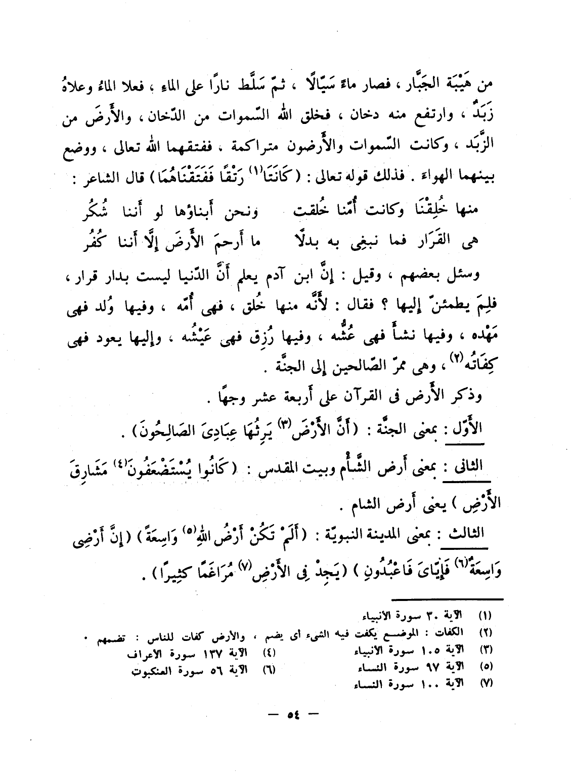 وذكر الأَرض فى القرآن على أَربعة عشر وجهاً.