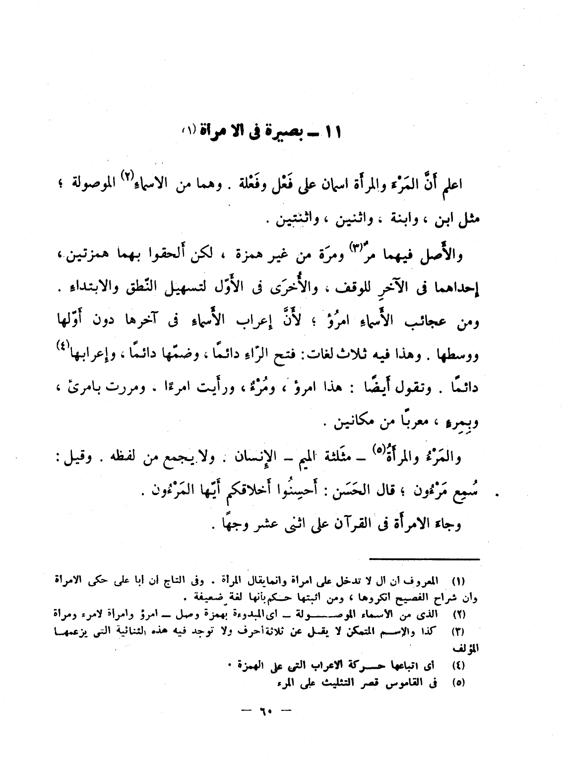 اعلم أَنَّ المَرْءَ والمرأَة اسمان على فَعْل وفَعْلة. وهما من الاسماءِ الموصولة؛ مثل ابن، وابنة، واثنين، واثنتين.